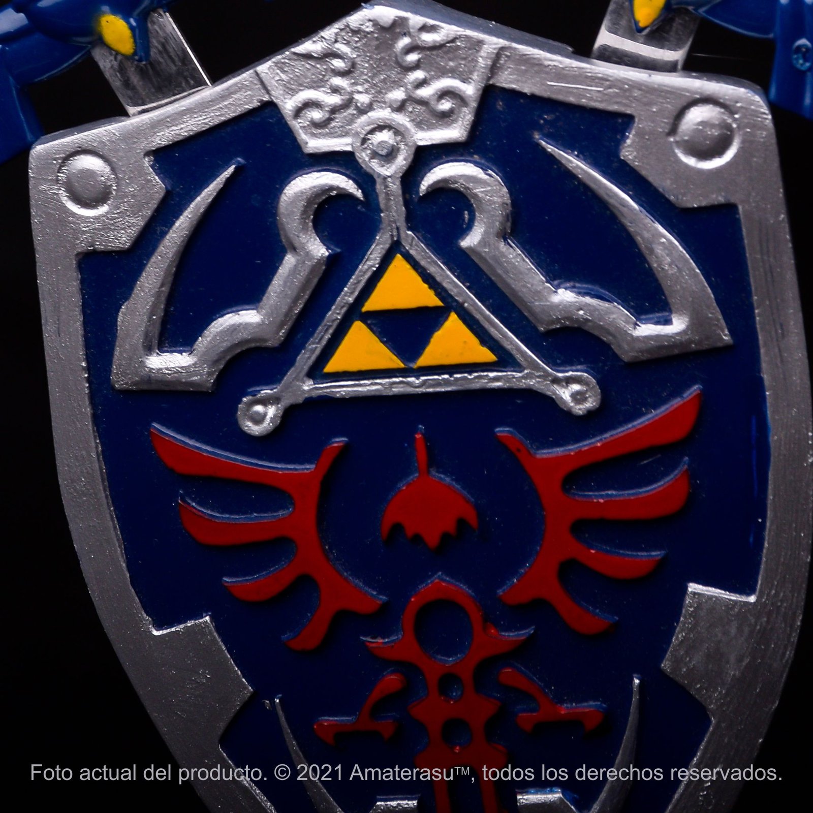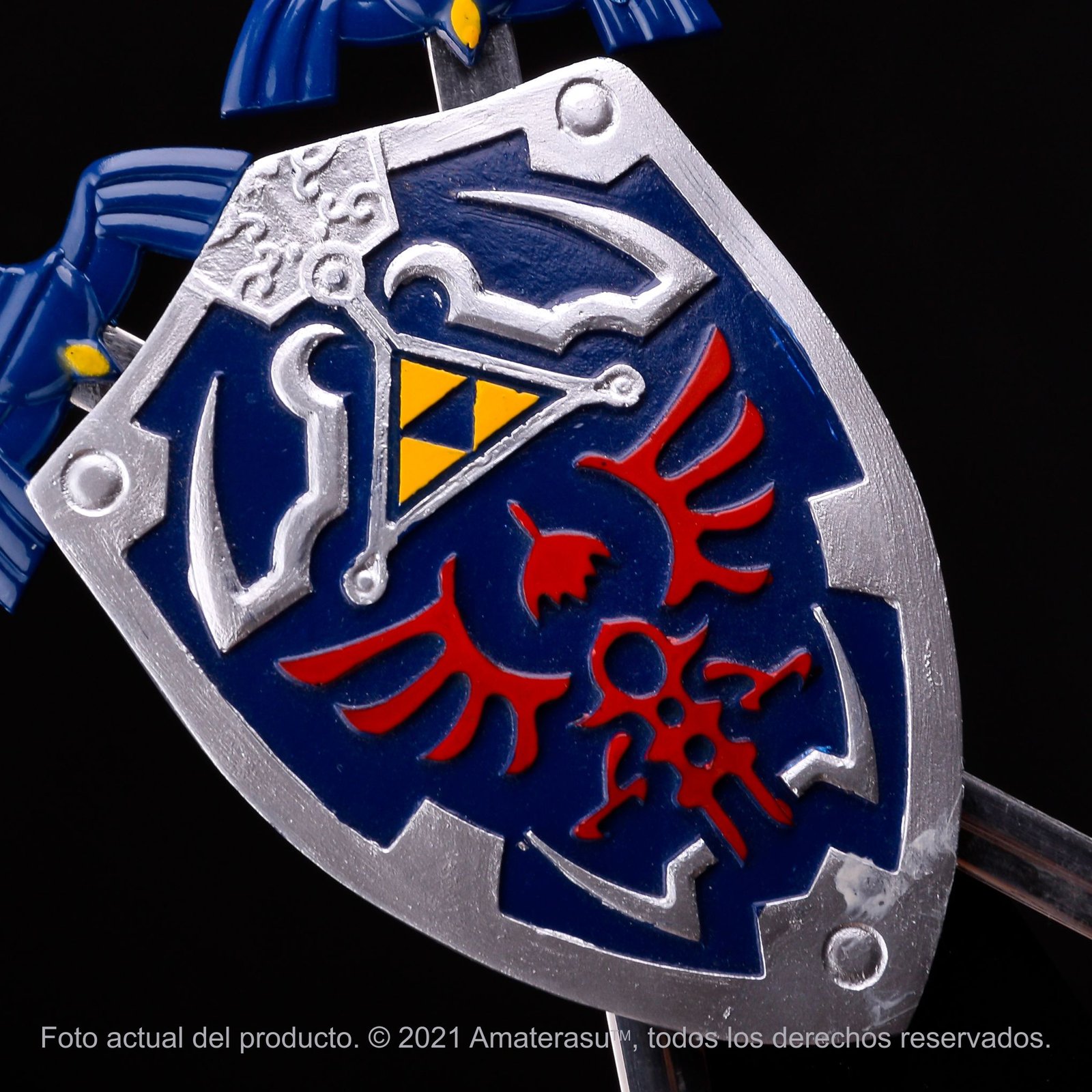 Diseño inspirado en la Master Sword y el escudo Hyliano del universo de The Legend of Zelda.