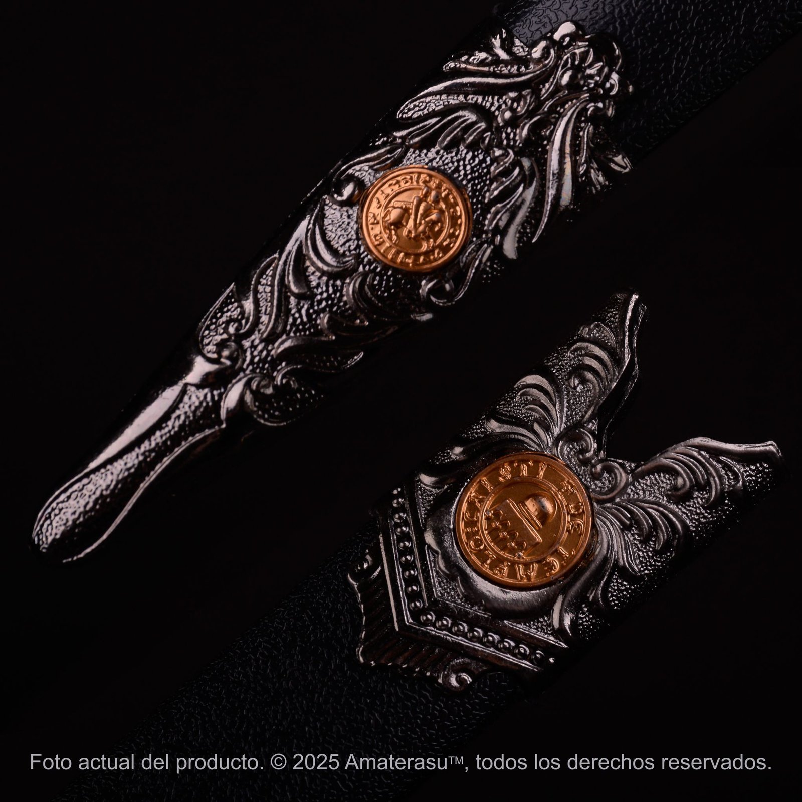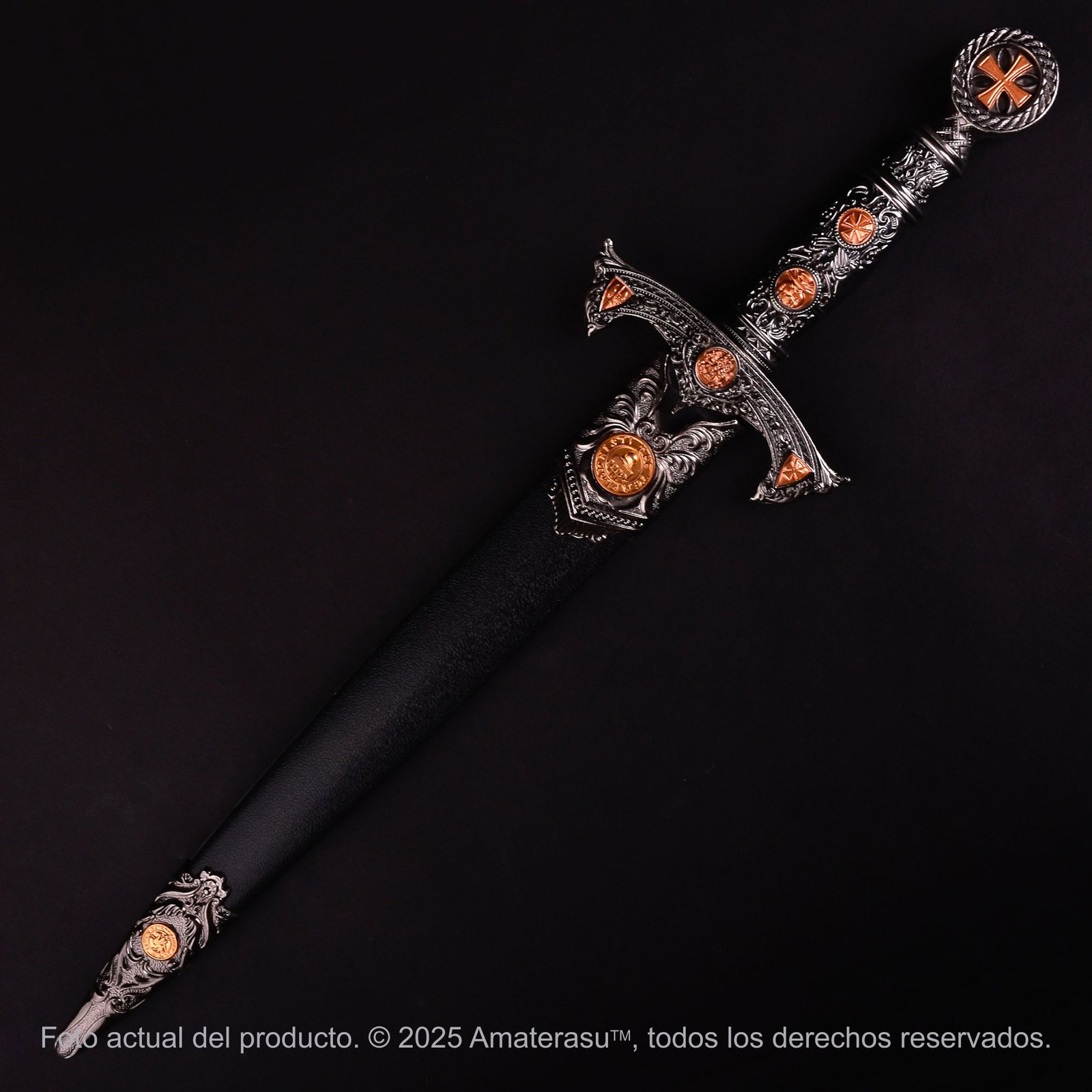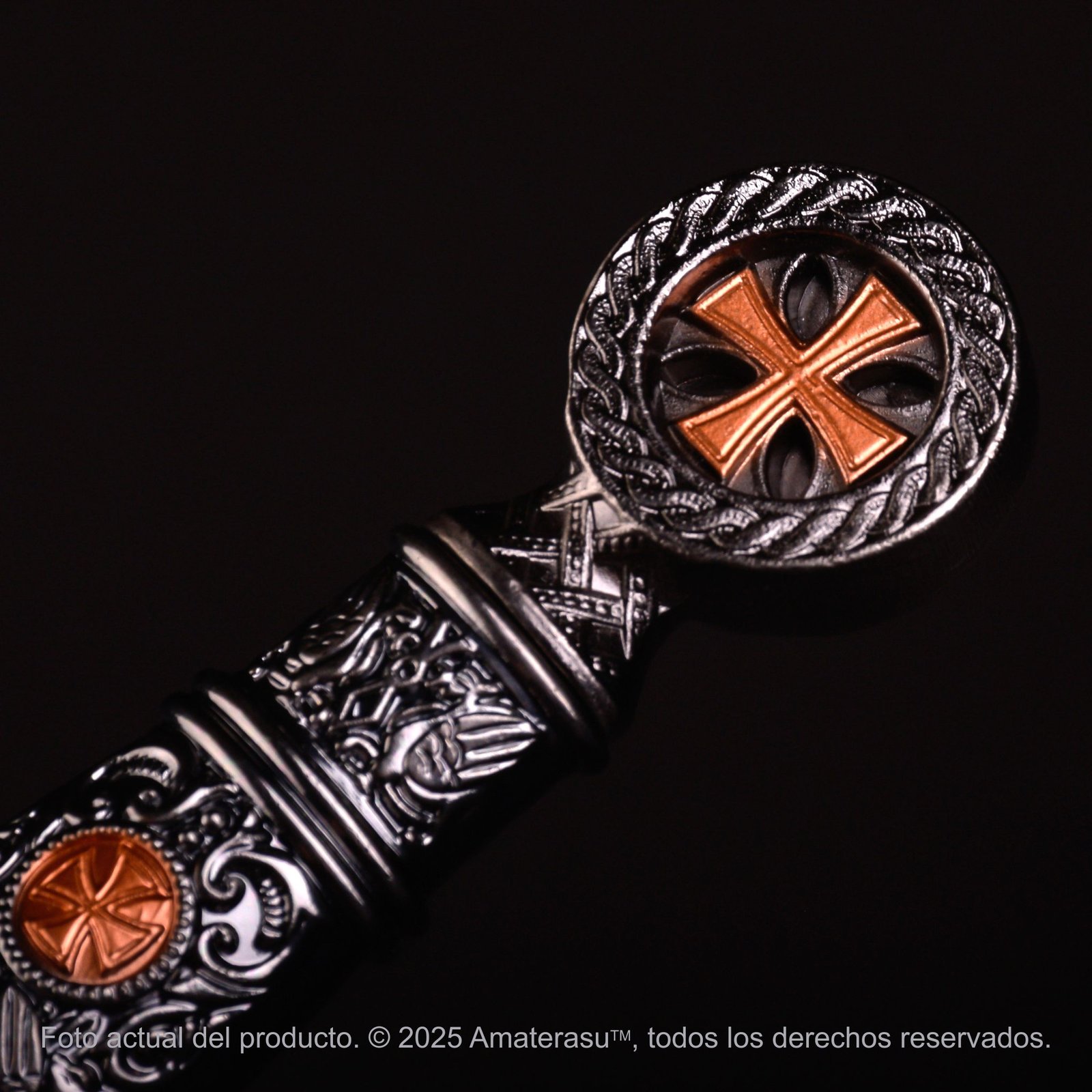 En el corazón de la Edad Media, los Caballeros Templarios forjaron un mito que perdura hasta hoy. Esta recreación de fantasía épica rinde homenaje a su disciplina y sacrificio. Su diseño se caracteriza por una riqueza visual única, donde cada sección del arma cuenta una historia a través de su simbología incrustada, convirtiéndola en una presencia visual destacada que atrae todas las miradas.