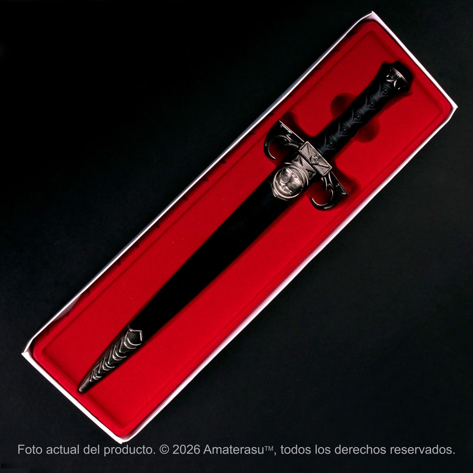 Esta pieza es una réplica metálica/polímero destinada exclusivamente a la decoración. A pesar de ser ligera, cuenta con una punta funcional y debe ser manipulada con responsabilidad. Amaterasu comercializa este artículo como pieza de colección. El uso indebido fuera del ámbito decorativo queda bajo responsabilidad del usuario.