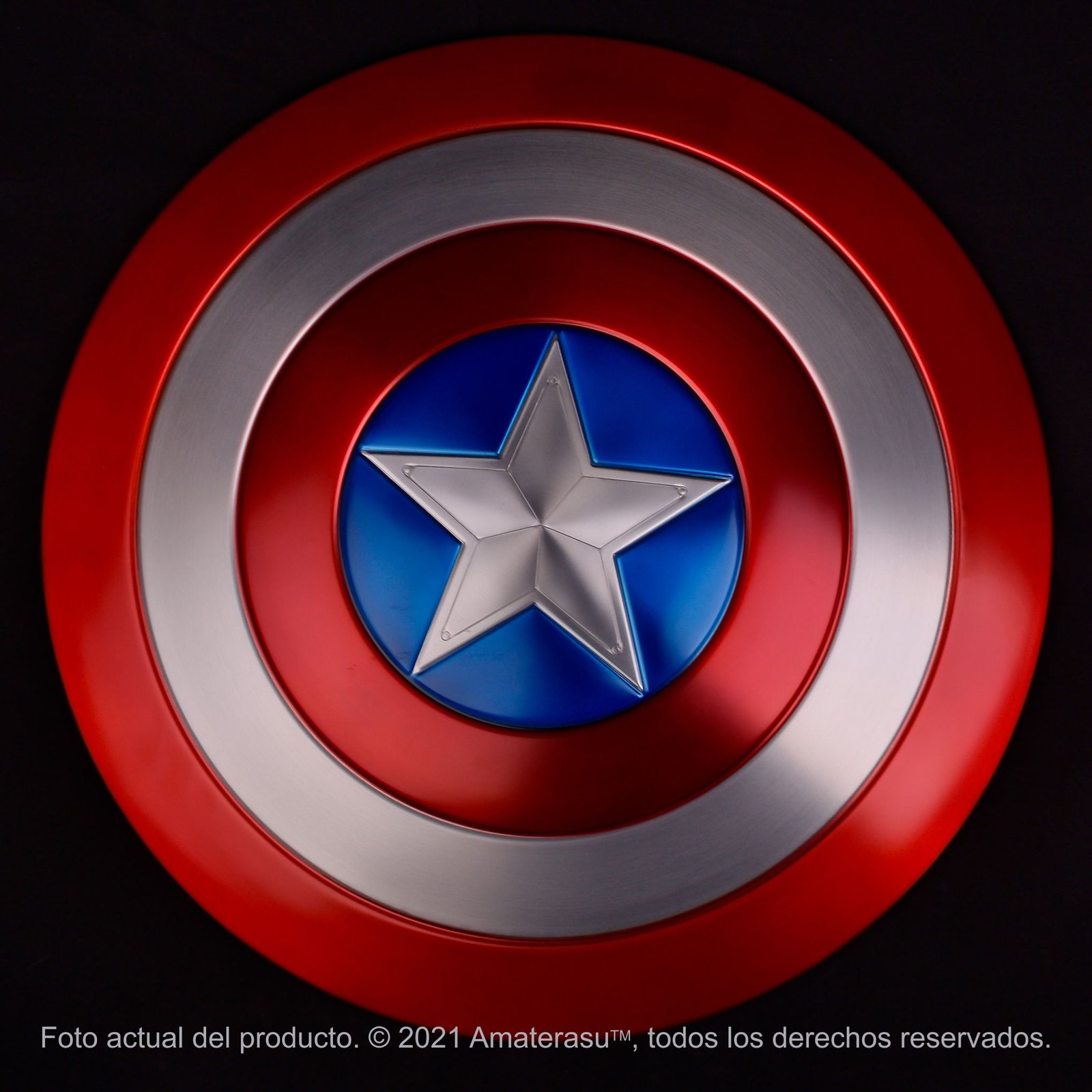 El escudo Capitán América, diseñado bajo los estándares de las utilerías de producción originales, este escudo captura las proporciones y colores exactos vistos en las películas. Se ha dedicado una inmensa cantidad de tiempo a recrear cada detalle con precisión, desde los anillos concéntricos hasta la estrella central satinada, utilizando especificaciones técnicas derivadas de capturas de pantalla de la película y fotografías promocionales.