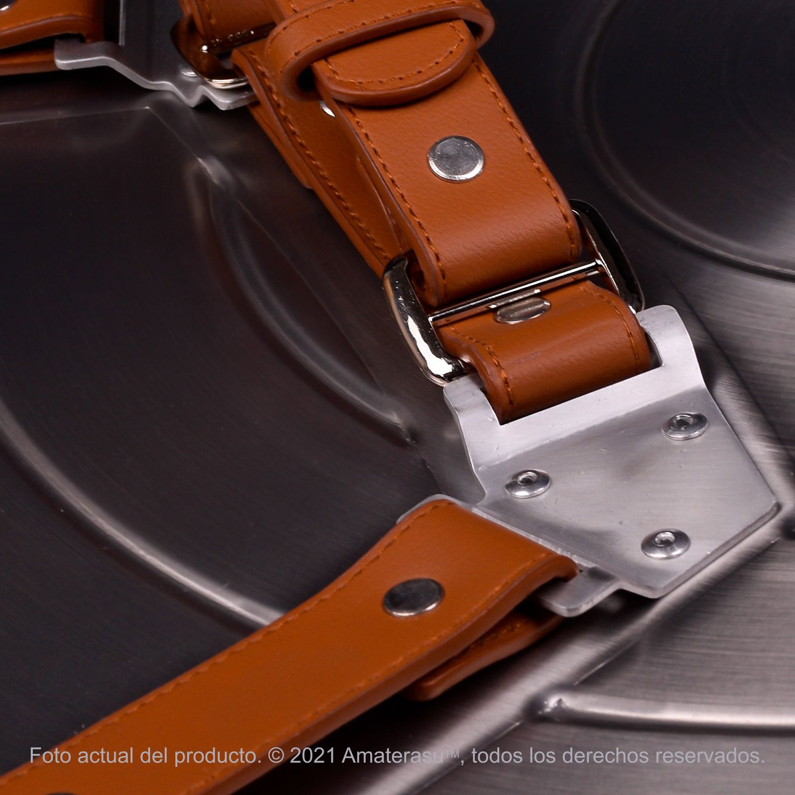 - Sistema de Agarre: Correas de cuero de plena flor (high-quality full-grain) con hebillas metálicas ajustables.