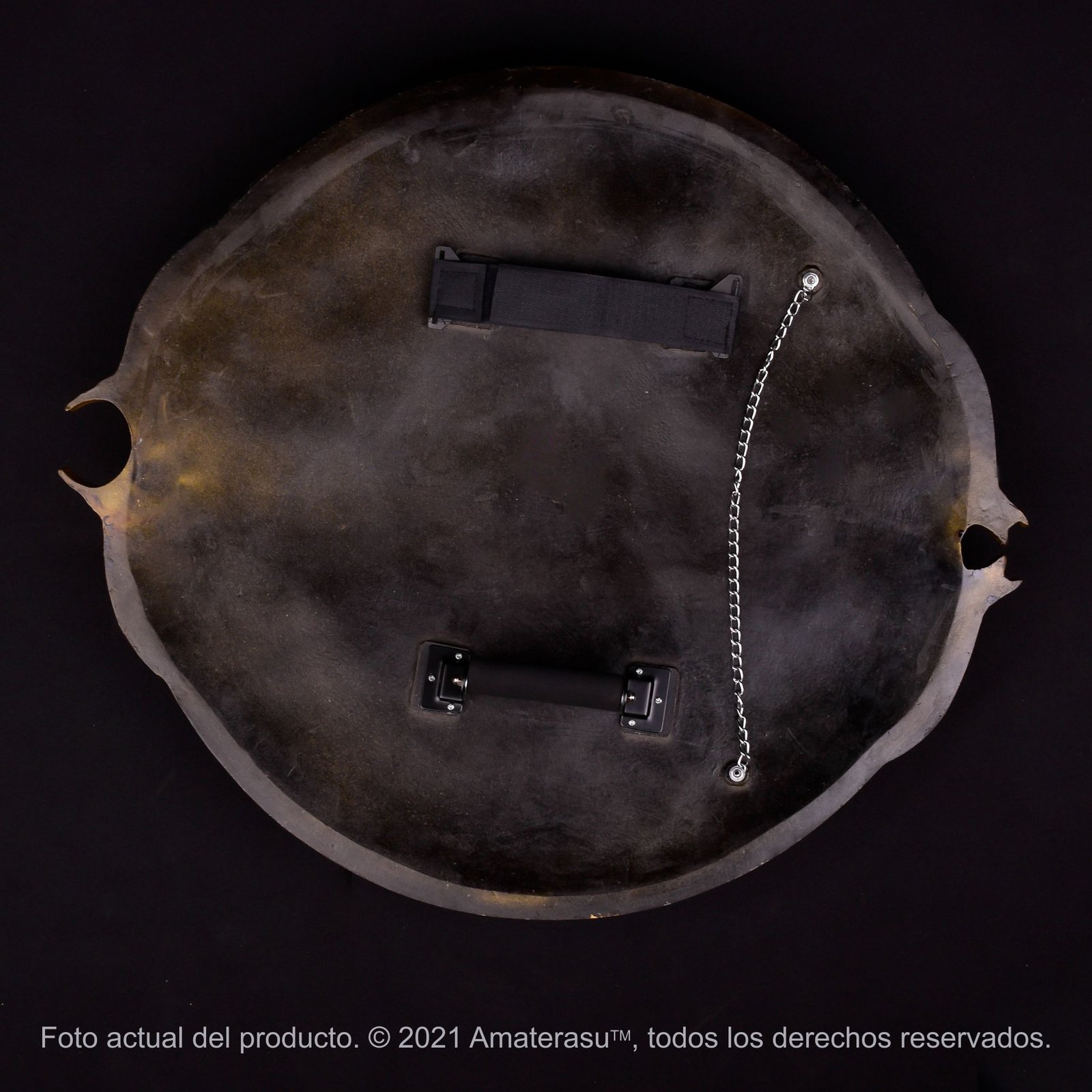 En la parte posterior incorpora correa y asa, facilitando su manipulación para cosplay, sesiones fotográficas, ambientación temática o exhibición en pared.