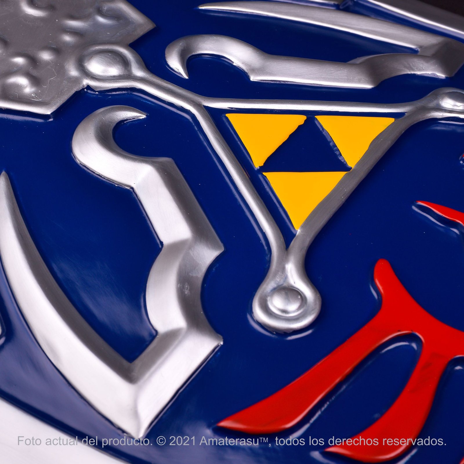 Escudo inspirado en el icónico Escudo Hyliano del héroe Link en la saga The Legend of Zelda. Fabricado en poliresina de alto detalle, combina fidelidad visual, ligereza estructural y gran presencia para colección, cosplay y exhibición temática.