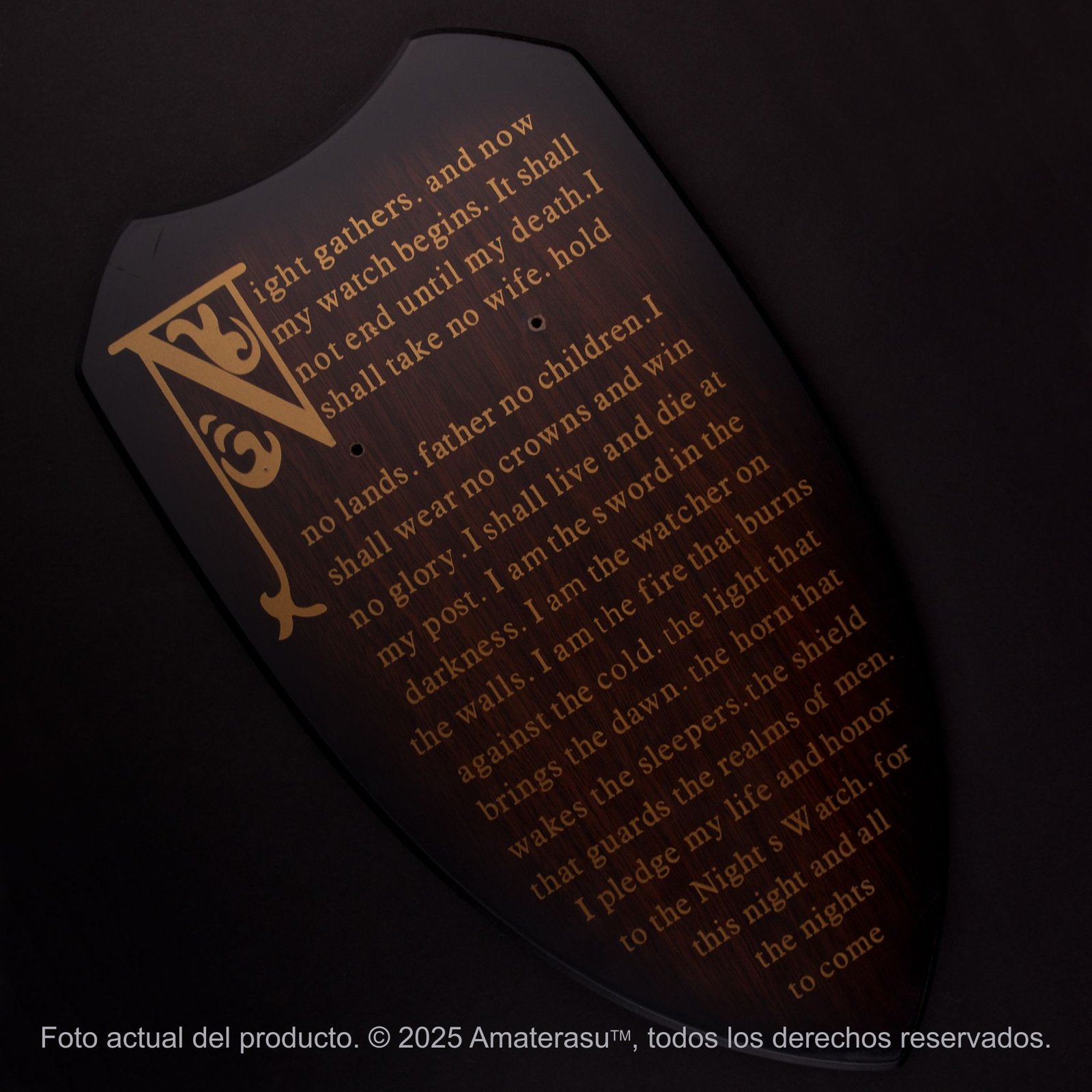 - Accesorios: Incluye panoplia de madera serigrafiada (Night’s Watch Oath) y kit de instalación.