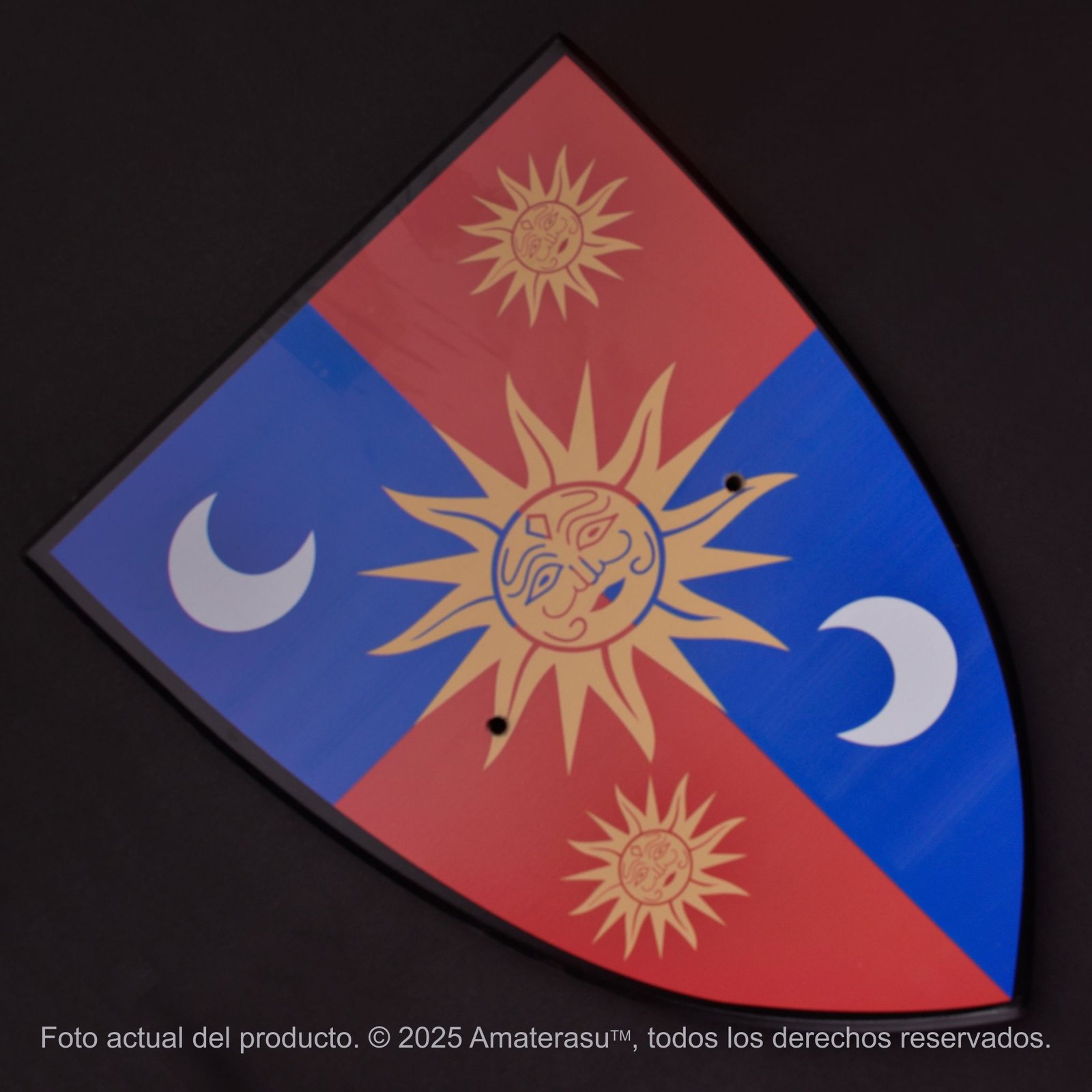Cumple tu promesa con la legendaria Guardajuramentos. Una imponente pieza de colección forjada en acero inoxidable 440 con un acabado pulido espejo impecable. Sus detalles en aleación de zinc capturan la esencia de la heráldica de Poniente. Incluye panoplia de madera serigrafiada para una exhibición de alta gama.