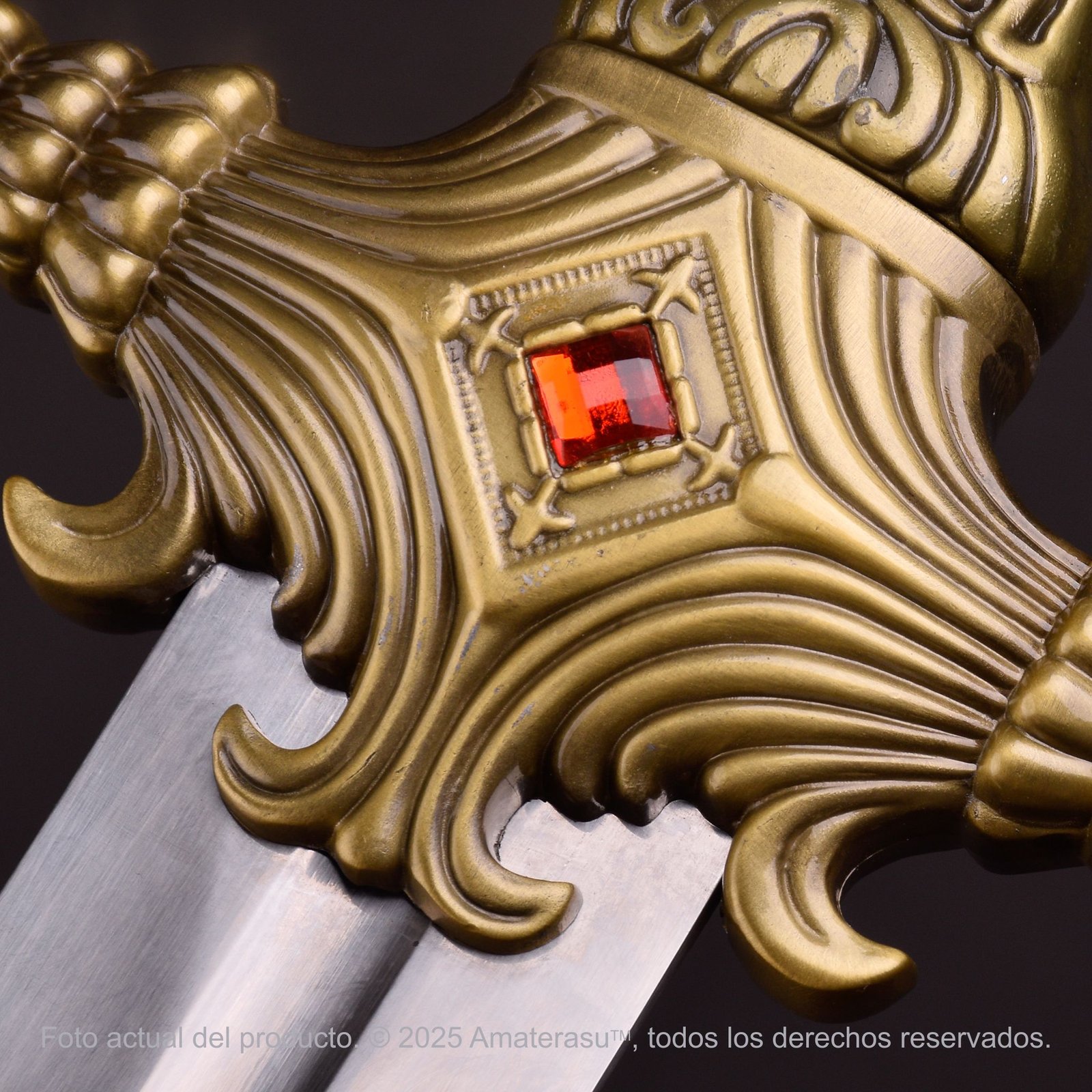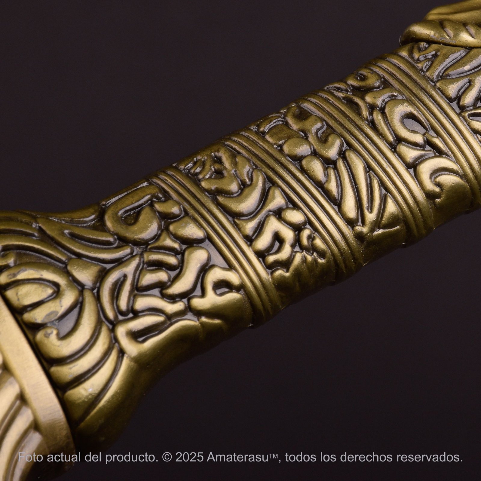 - Empuñadura y Detalles: Aleación de zinc (Guarda y Pomo decorados).