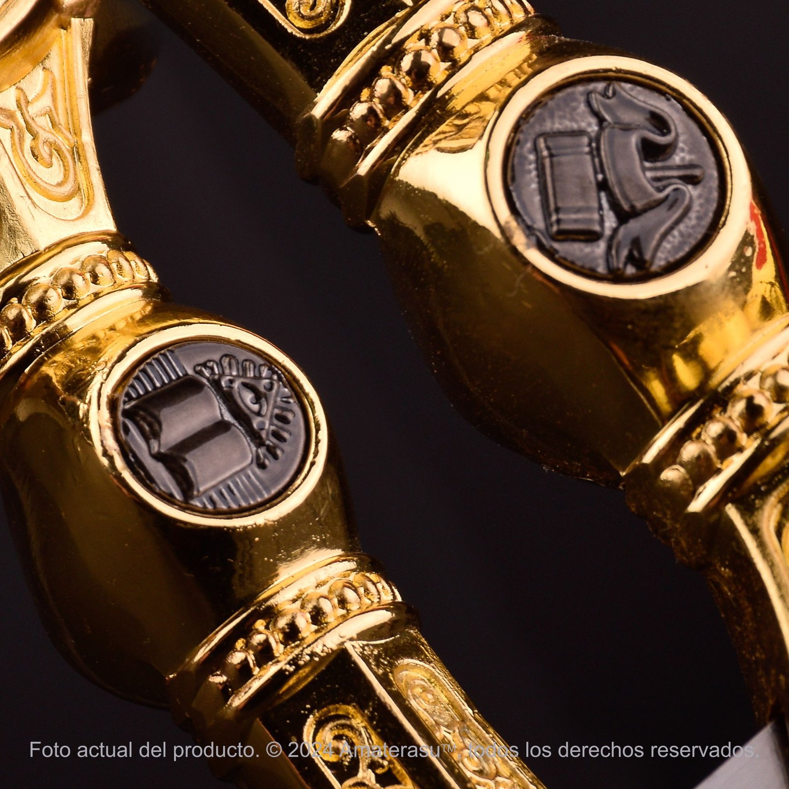 Esta es una réplica metálica de gala destinada exclusivamente a la decoración y el coleccionismo. Debe ser manipulada por adultos y mantenerse fuera del alcance de los niños debido a su tamaño y peso. Amaterasu comercializa este producto como una pieza de exhibición; cualquier otro uso queda bajo responsabilidad del usuario.