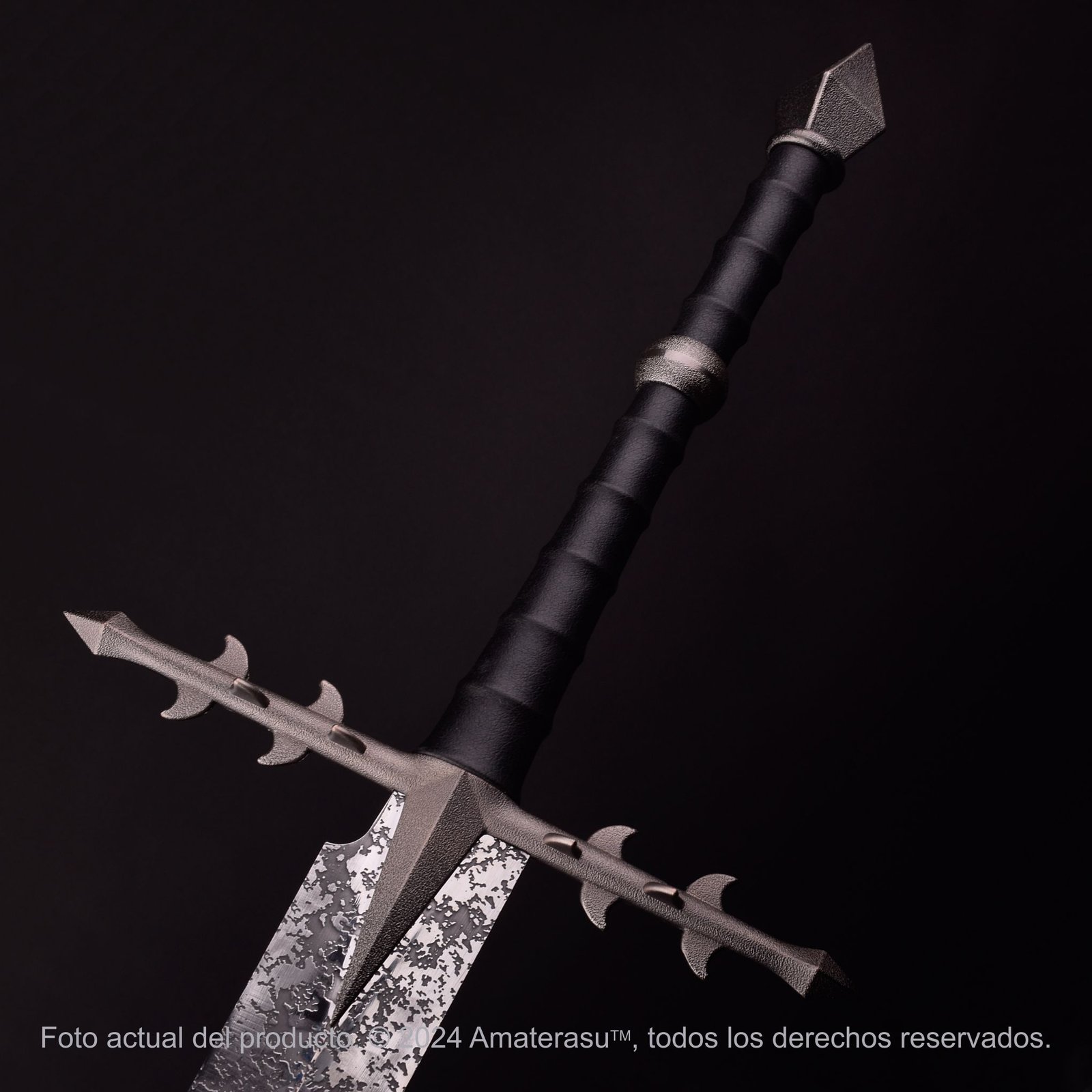 A pesar de su gran tamaño, esta espada ha sido proyectada para mantener un peso equilibrado de 1.4 kg, permitiendo que sus detalles heráldicos luzcan con la jerarquía de una pieza de museo sin ser excesivamente pesada para su montaje. Su diseño de mano y media (bastarda) es fiel a la estética cinematográfica de los jinetes negros.