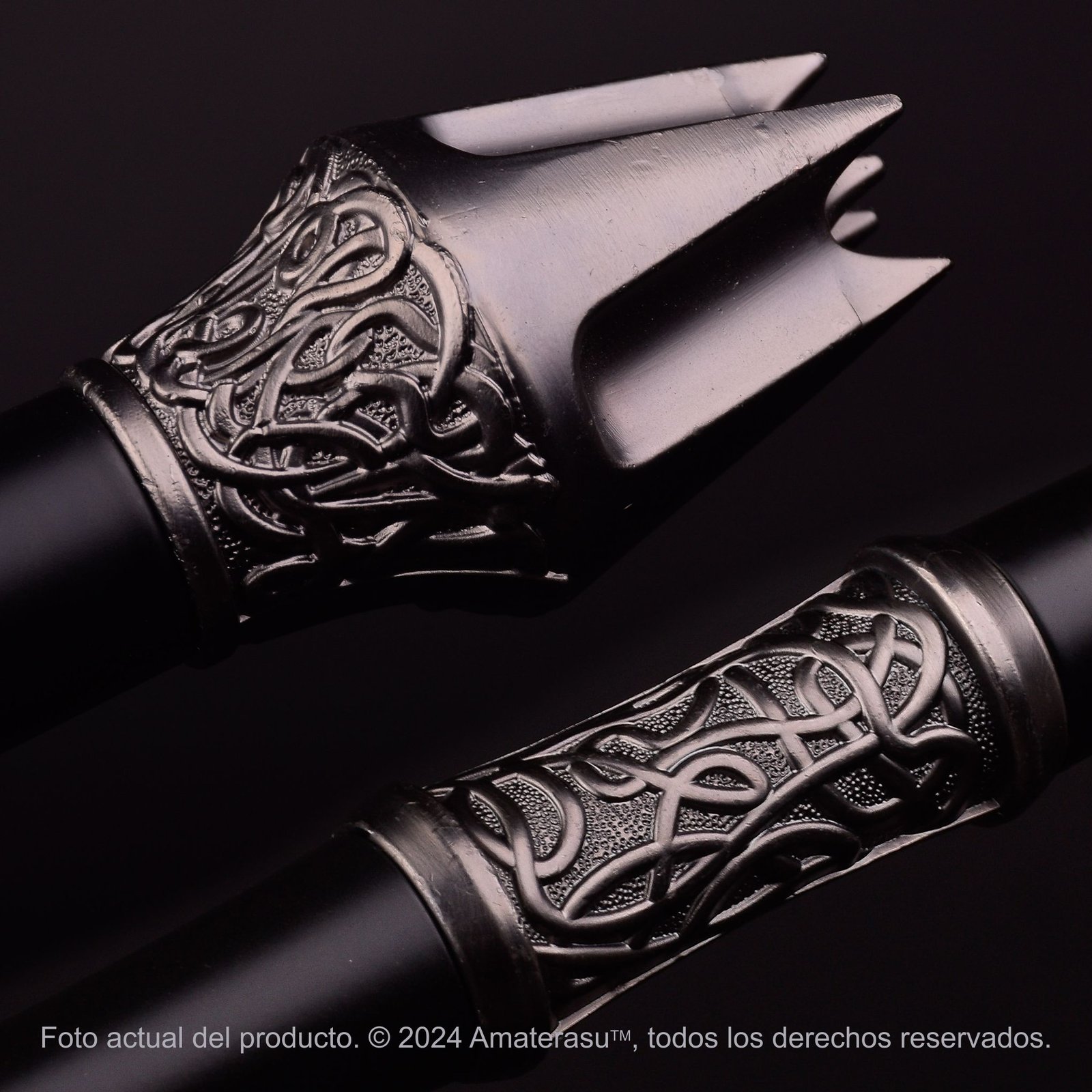 De entre todos los sirvientes del Enemigo, ninguno es tan temido como el Rey Brujo. Esta recreación de fantasía épica es una obra de proporciones masivas que hace honor al líder de los Nazgûl. Su diseño, caracterizado por una guarda dentada y agresiva, refleja la naturaleza corrupta y letal de quien no puede ser matado por ningún hombre.