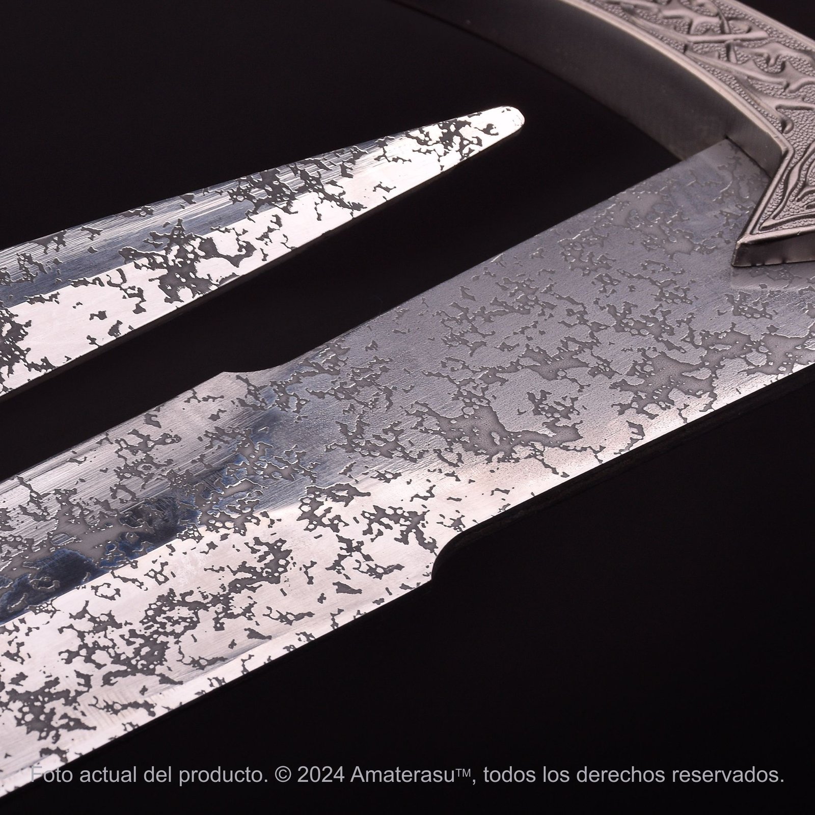 Esta pieza ha sido fabricada con materiales metálicos y está destinada exclusivamente a la ornamentación. Su manipulación debe ser cuidadosa y responsable. Amaterasu comercializa este artículo como pieza de colección y exhibición. El uso indebido para fines de impacto o cualquier actividad ajena a la decoración queda bajo responsabilidad exclusiva del usuario.