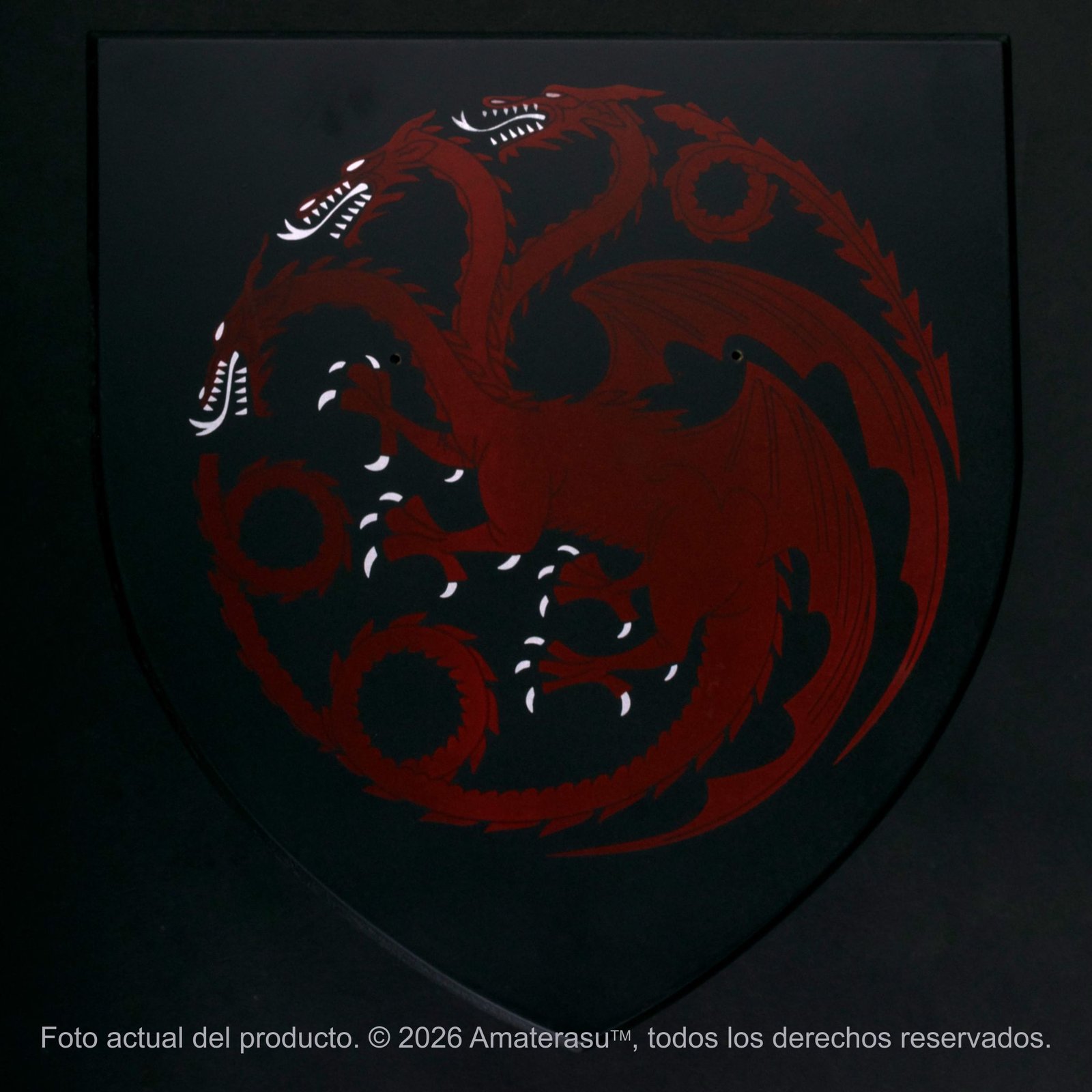 Pieza de colección – Exhibición y Coleccionismo: Aunque su construcción es masiva y respeta las dimensiones de una espada de guerra de gran porte, este artículo ha sido creado con un fin estrictamente decorativo y de colección. Su diseño se centra en la fidelidad estética y en la representación del arte valyrio. Se entrega con una panoplia de madera serigrafiada, diseñada para montaje en pared, permitiendo que la imponente hoja de 9 cm de ancho sea el centro de todas las miradas. Incluye todos los accesorios necesarios para una instalación segura.