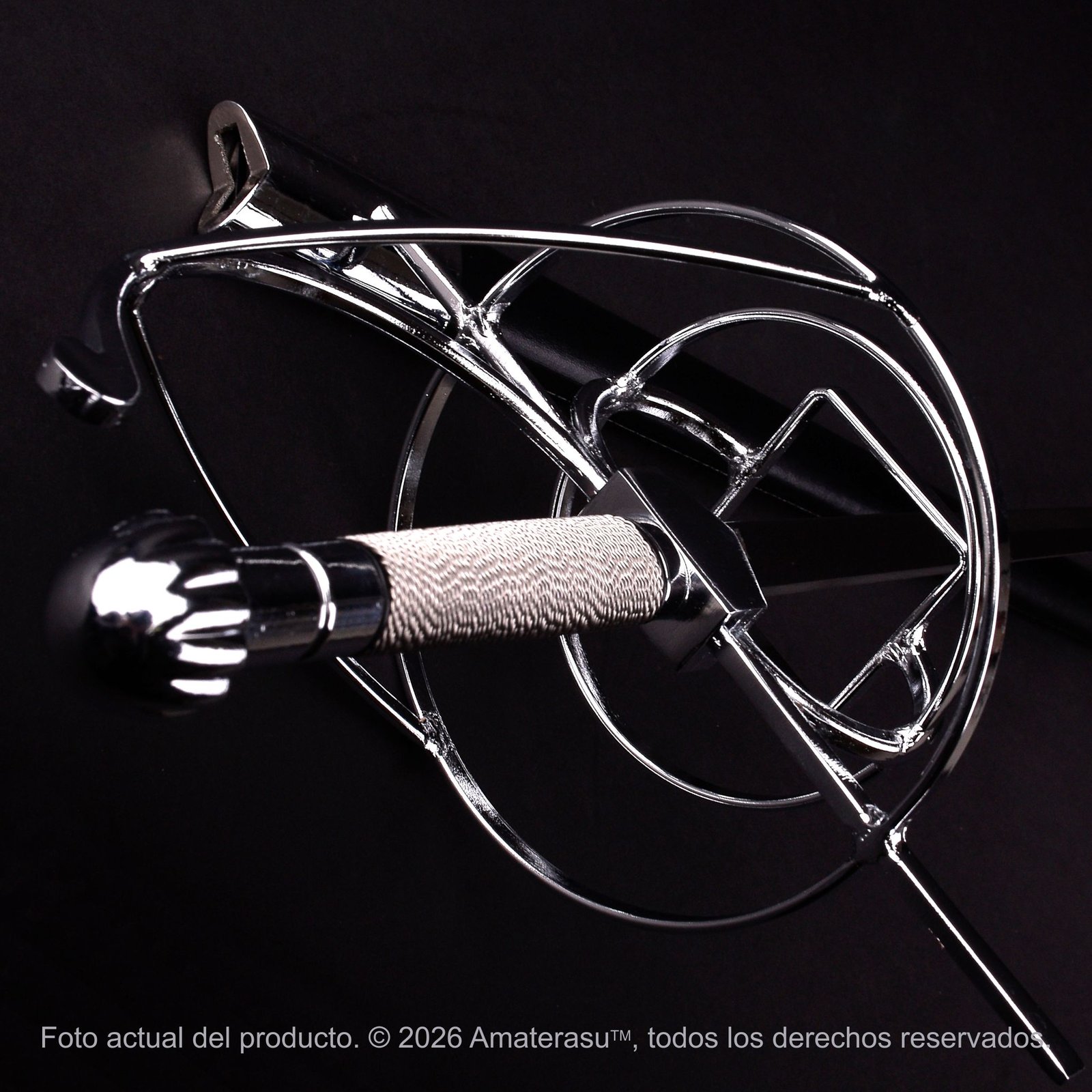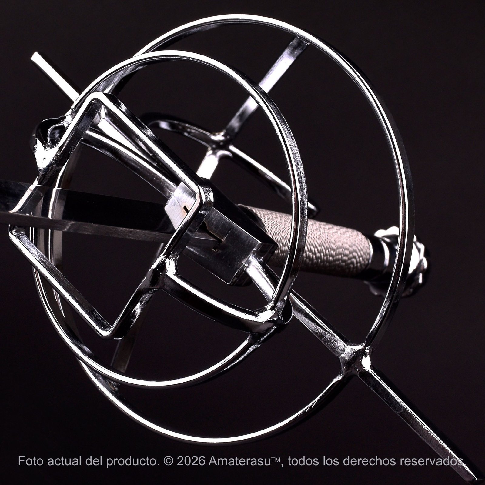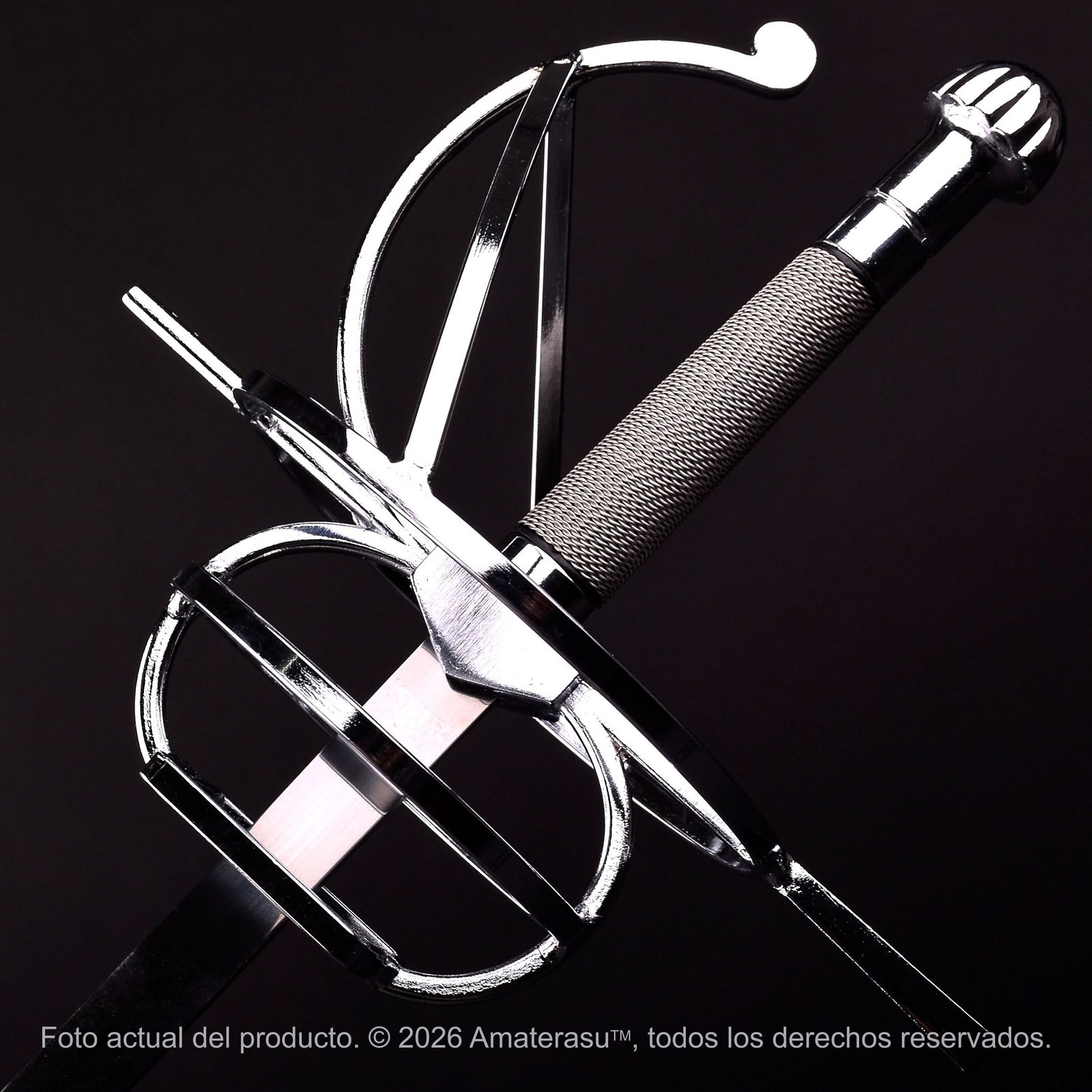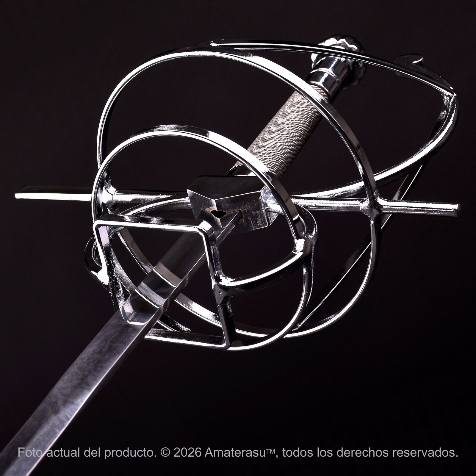 La Espada Ropera de Amaterasu evoca la sofisticación de las cortes europeas, donde la espada no era solo una herramienta de duelo, sino un símbolo de estatus. Su característica más distintiva es la guarda en aleación de zinc, que presenta un diseño intrincado de gavilanes y anillos destinados a proteger la mano con elegancia.