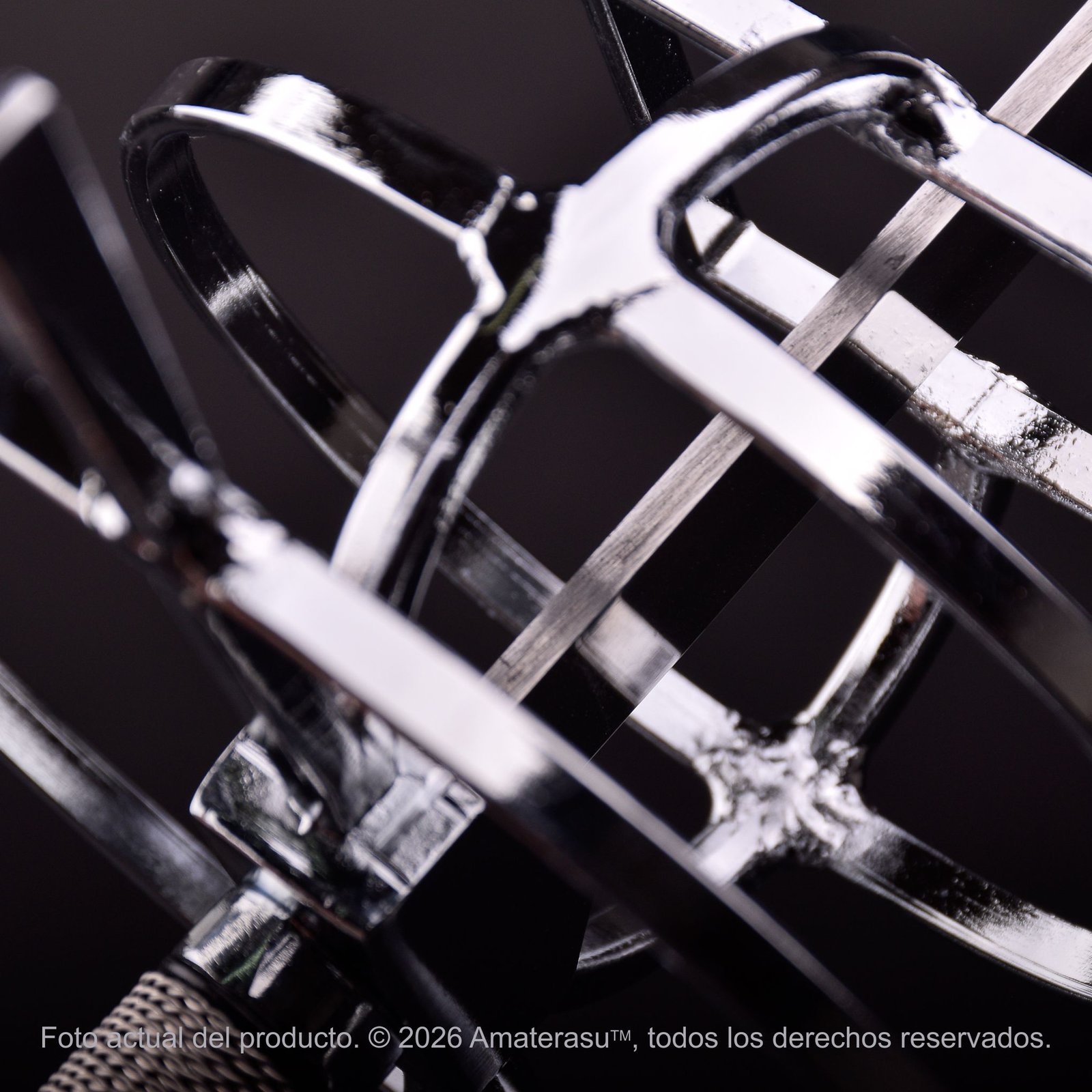 Para preservar el brillo del alambre trenzado y la hoja espejo, se recomienda limpiar la pieza con un paño de microfibra seco después de su manipulación, evitando el contacto directo de la piel con el acero para prevenir manchas por humedad.