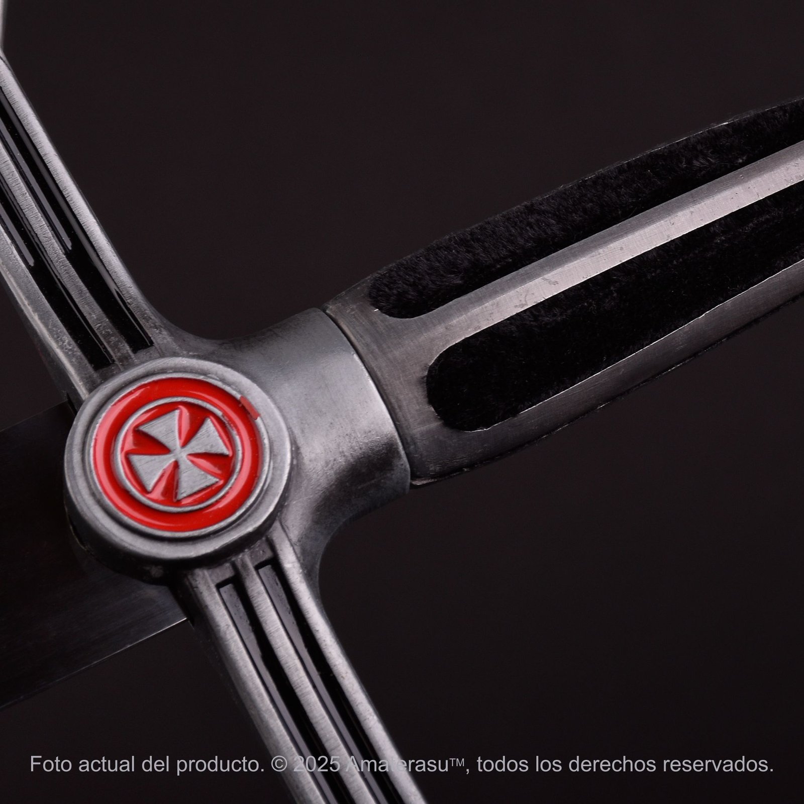 Esta pieza es una réplica metálica destinada exclusivamente a la ornamentación y el protocolo ceremonial. No es un arma de impacto ni combate. Amaterasu comercializa este artículo como pieza de colección. El uso indebido fuera de los marcos decorativos o rituales queda bajo responsabilidad exclusiva del usuario.