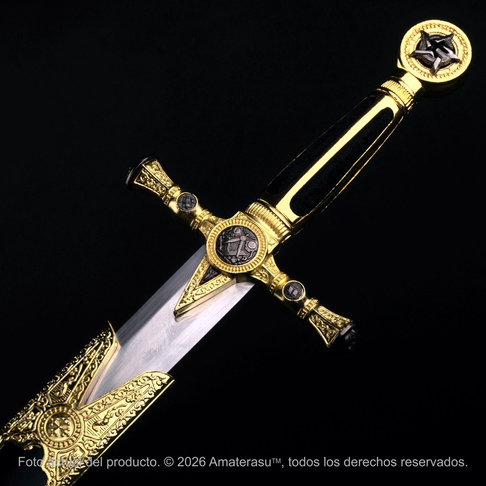 Pieza de colección – Uso Ceremonial y Decorativo: Esta obra ha sido creada con un fin estrictamente ornamental y ritual. Por su peso equilibrado de 893 g (con vaina), es perfecta para ser portada en desfiles o ceremonias oficiales, siendo el regalo ideal para una iniciación, un ascenso de grado o para presidir un estudio personal.