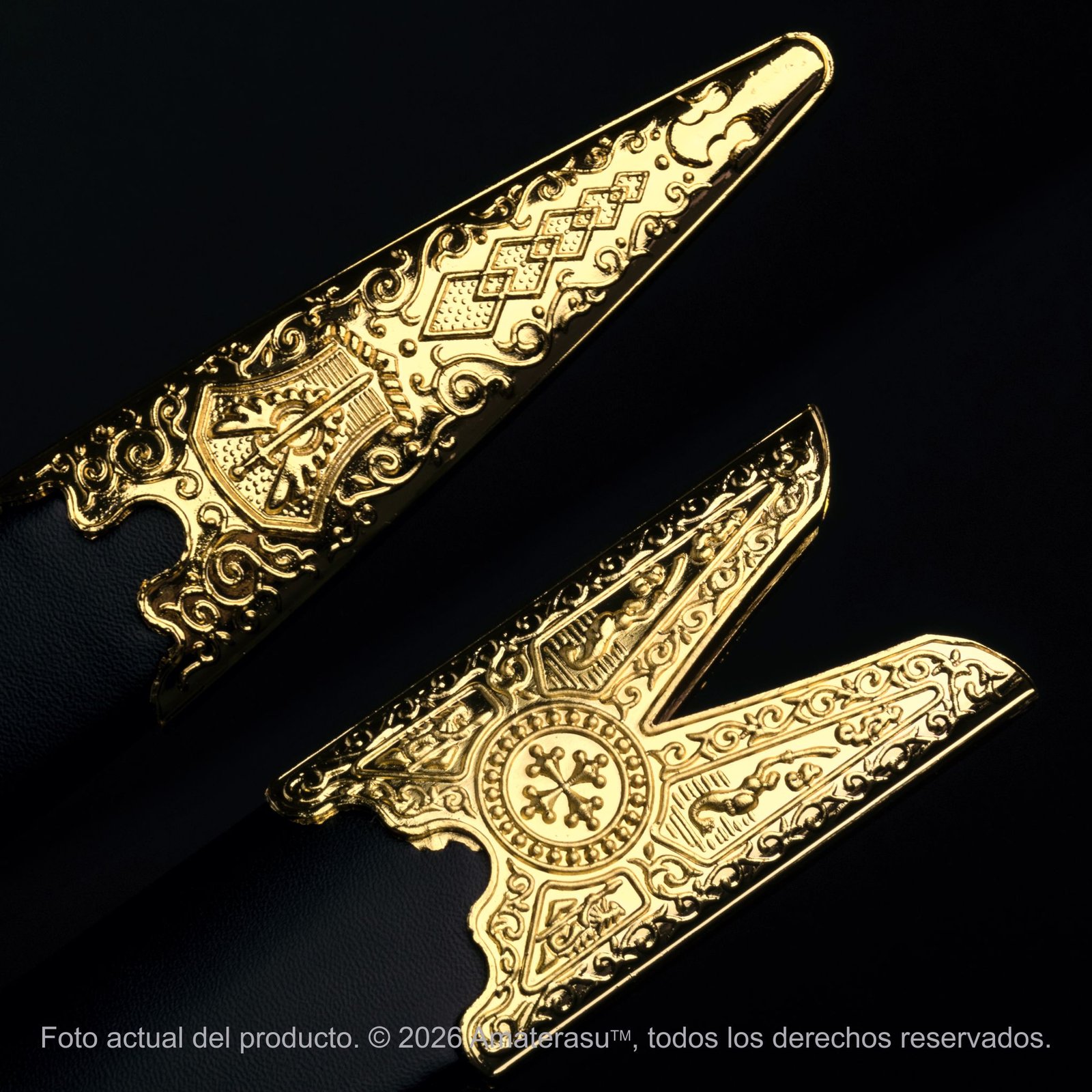 Esta pieza es una réplica metálica destinada exclusivamente a la ornamentación y el uso ceremonial. No es un arma de impacto ni está diseñada para el combate. Amaterasu comercializa este artículo como pieza de colección. El uso indebido fuera de los marcos protocolares o decorativos queda bajo responsabilidad exclusiva del usuario.