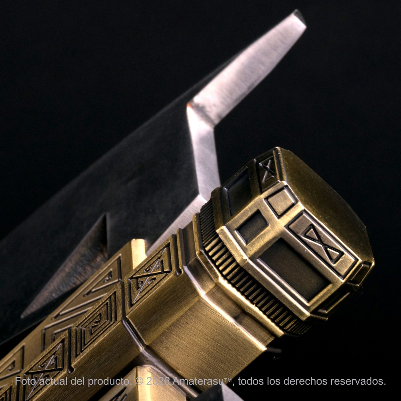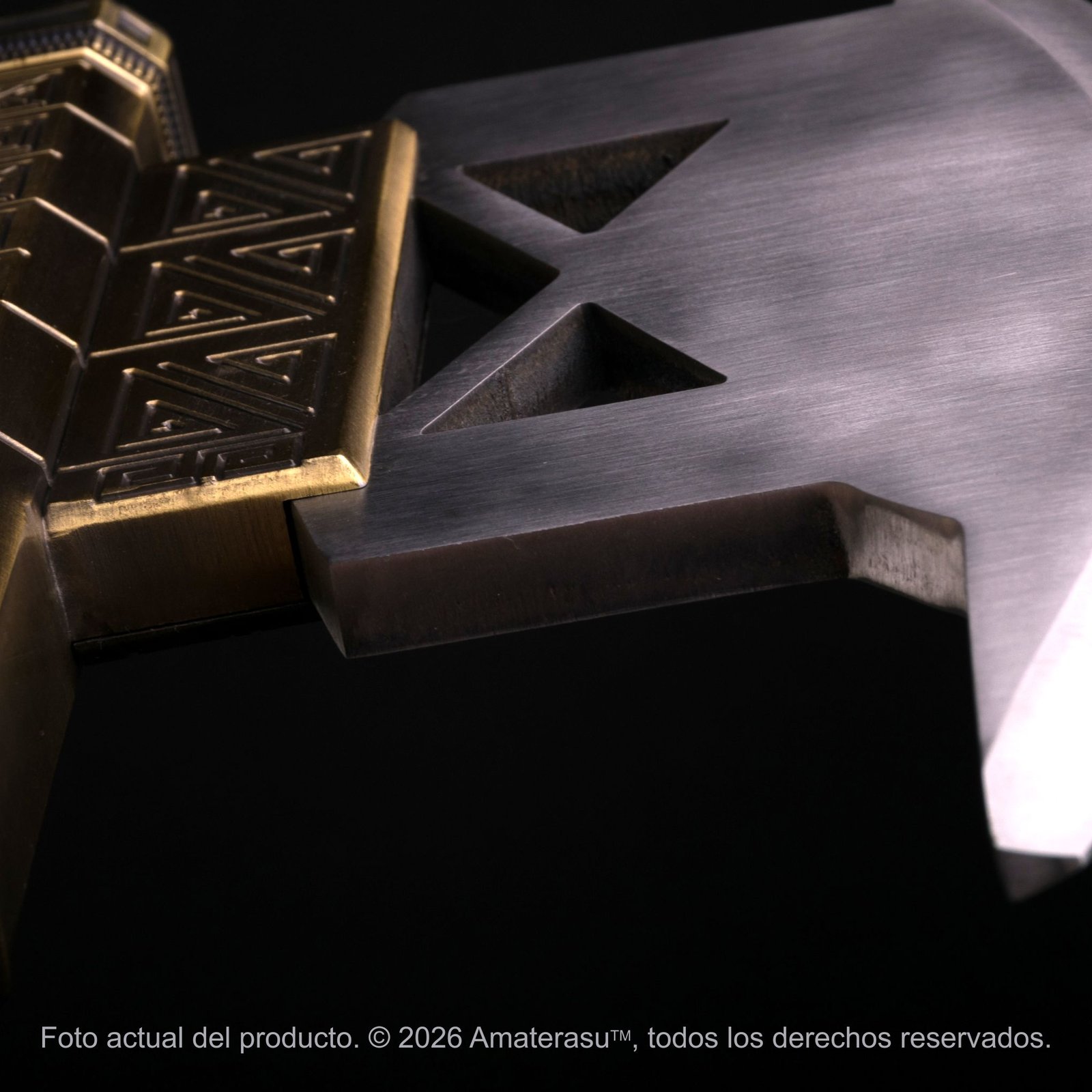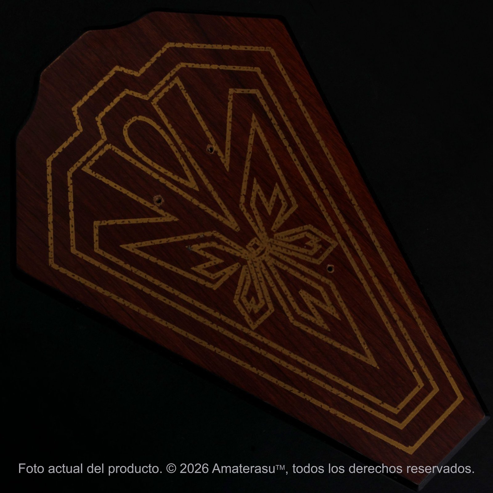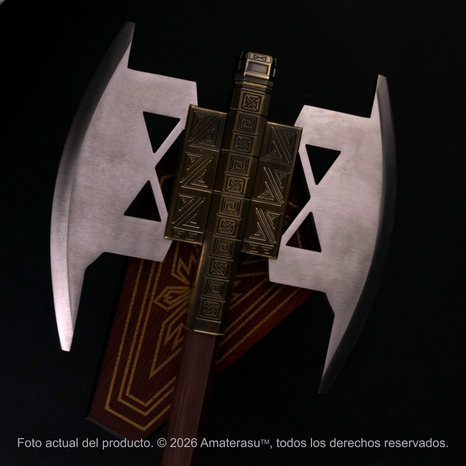 Atención: Debido a su peso extremo (4.5 kg), esta pieza debe ser manipulada con extrema precaución. No es un juguete ni está destinada a la práctica de combate. La instalación de la panoplia debe realizarse sobre paredes sólidas con fijaciones adecuadas. Amaterasu comercializa este artículo exclusivamente como pieza de colección y exhibición. El uso indebido queda bajo responsabilidad única del usuario.