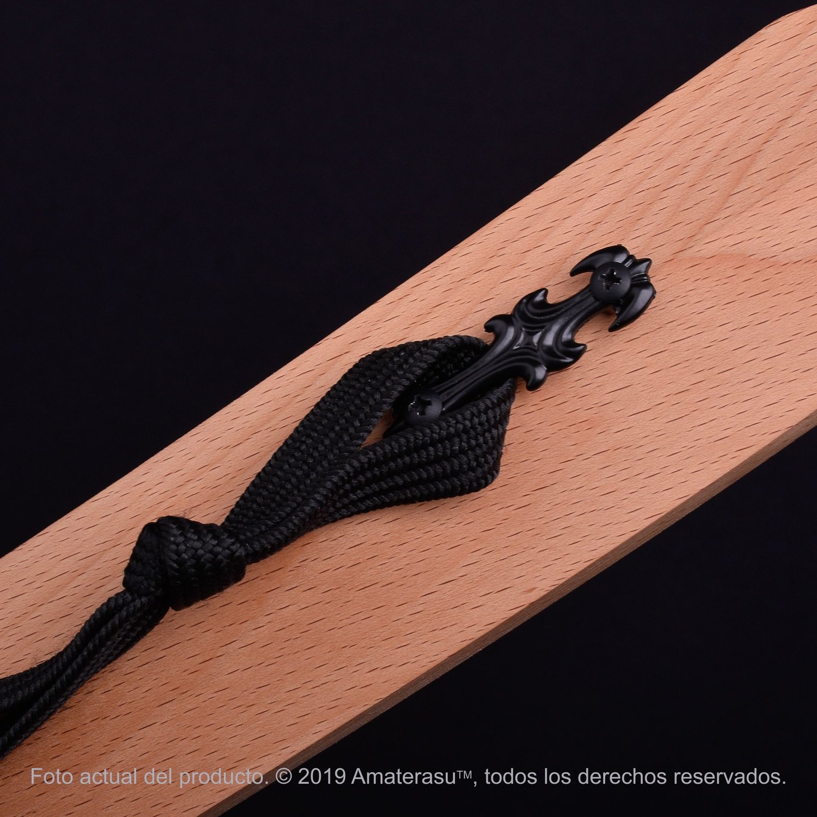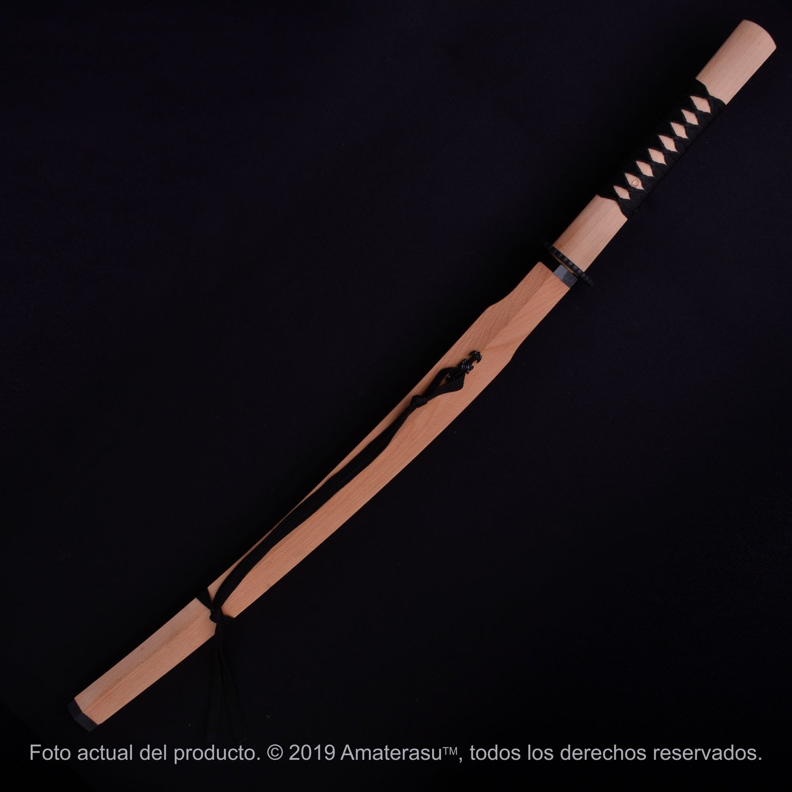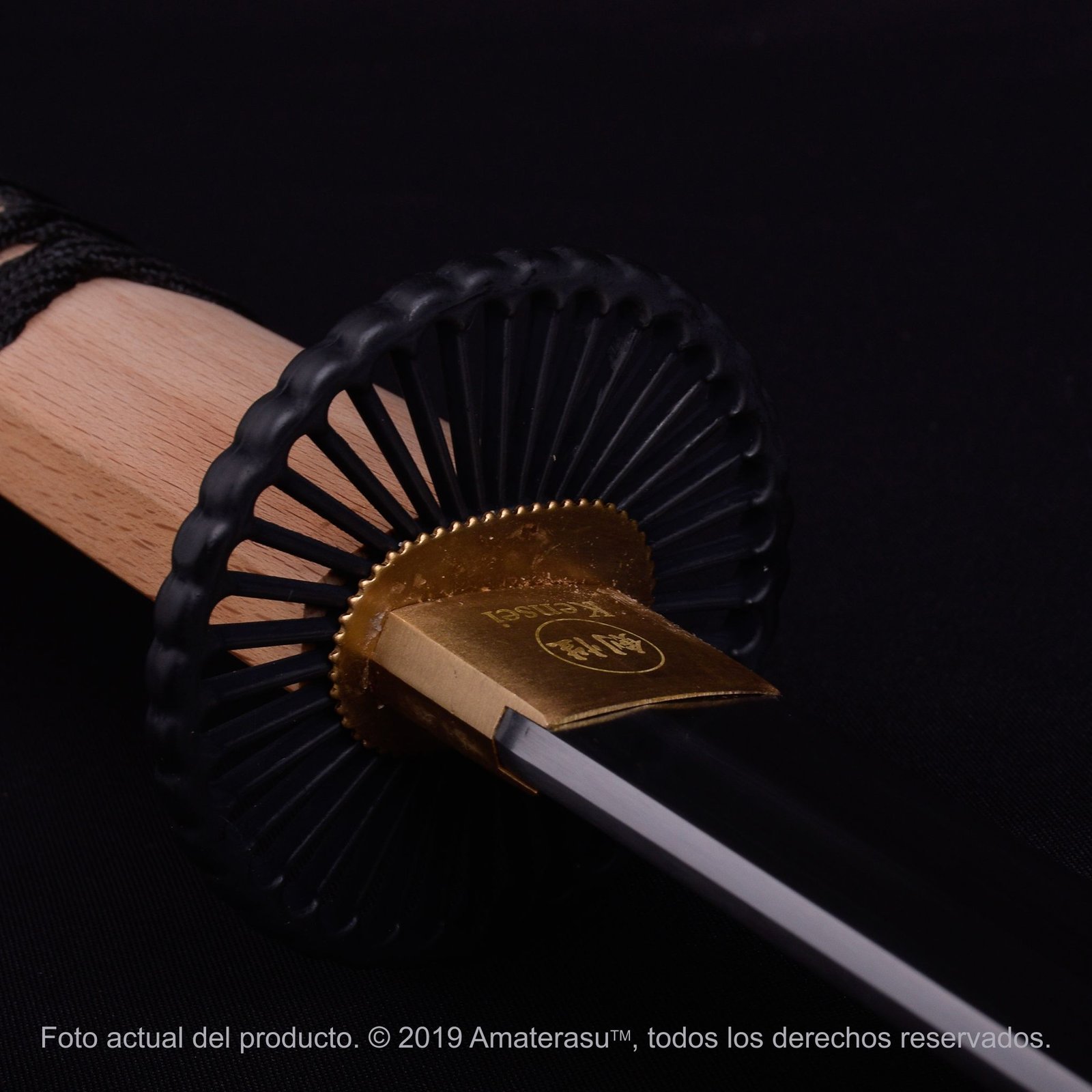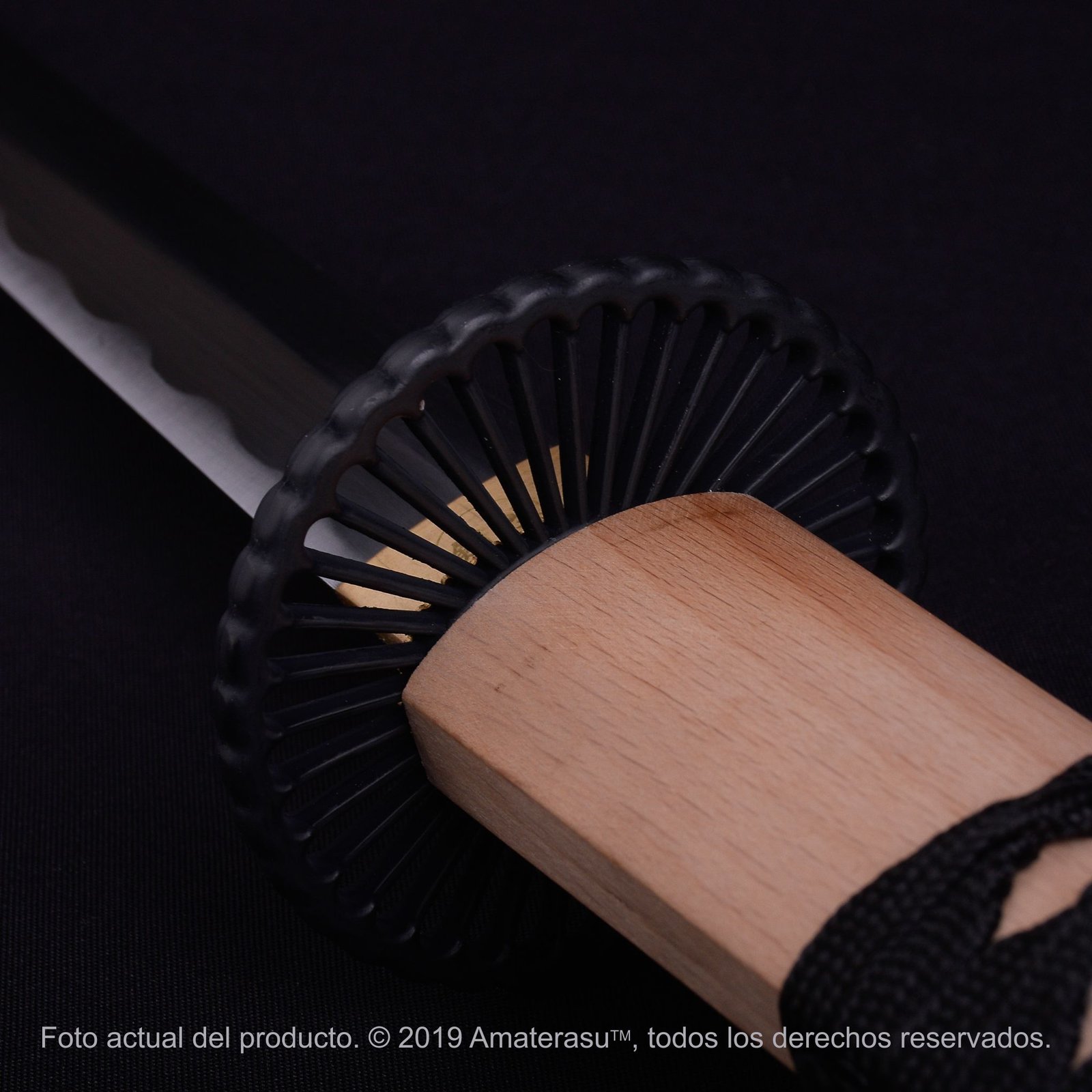 Forjada artesanalmente en acero al carbono 1045 normalizado, la hoja presenta filo real propio del material, un rasgo auténtico del acero trabajado, sin que ello implique una invitación a su uso. La tsuka de madera dura, envuelta en ito de seda ecológica, completa un montaje equilibrado y coherente con el universo visual de la película.