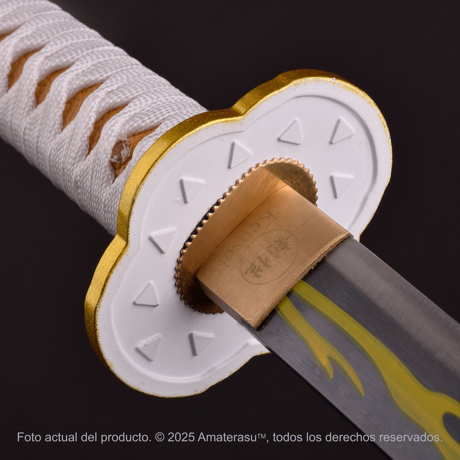 Su diseño respeta los elementos icónicos del arma asociada a Zenitsu, priorizando contraste, proporción y lectura inmediata.
