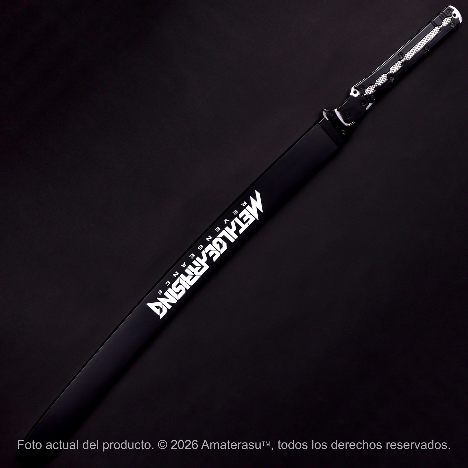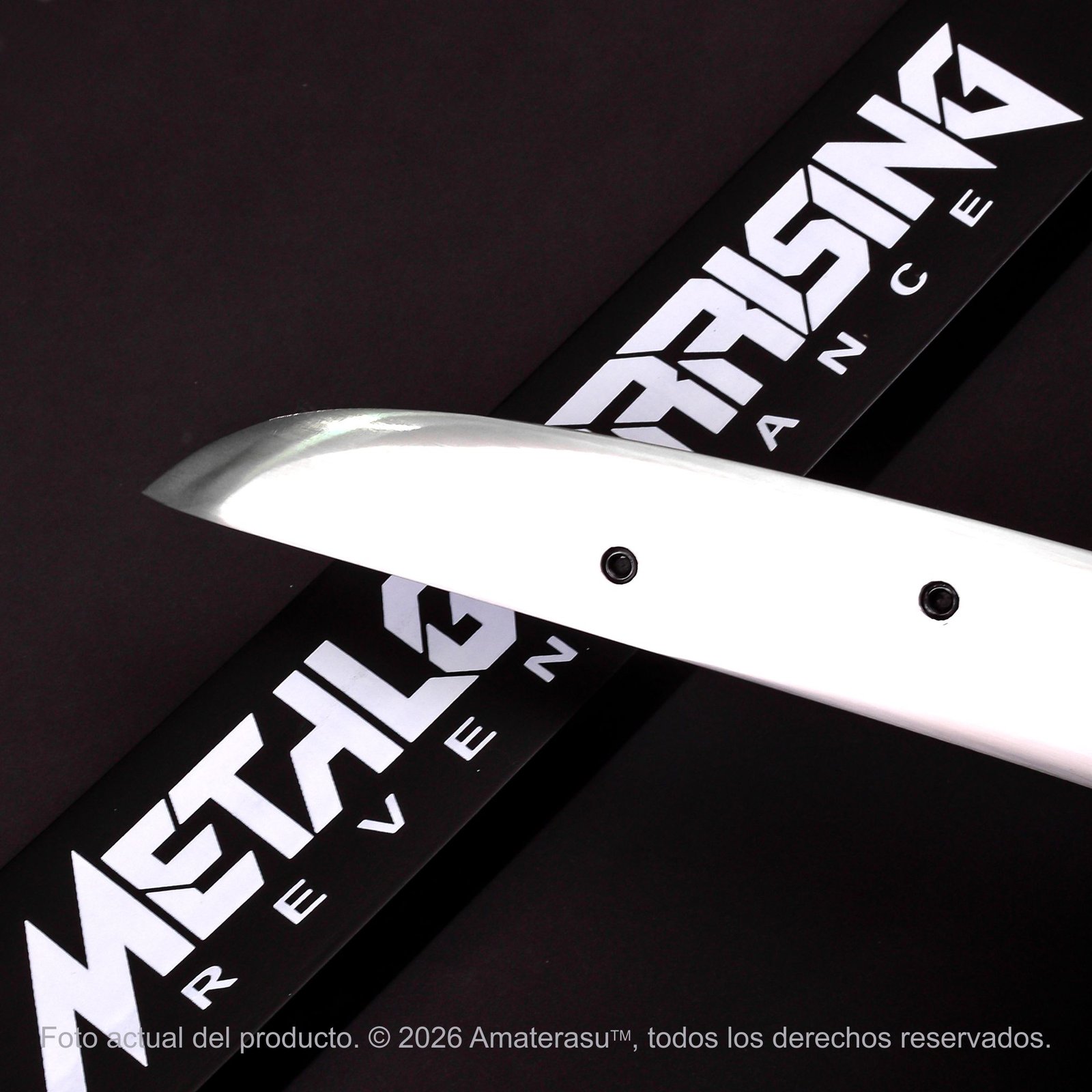 Katana inspirada en la espada de Raiden en Metal Gear Rising, con estética futurista, hoja en acero inoxidable y construcción sólida. Una pieza pensada para colección, exhibición y ambientaciones de alto impacto visual.