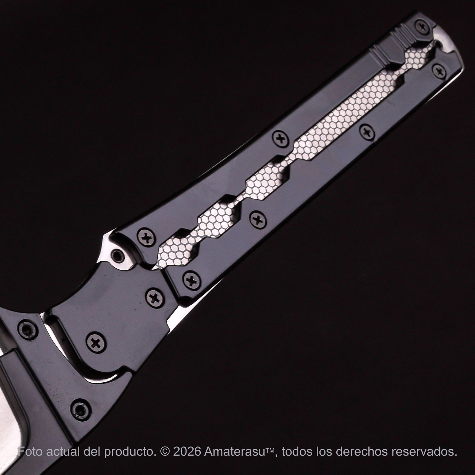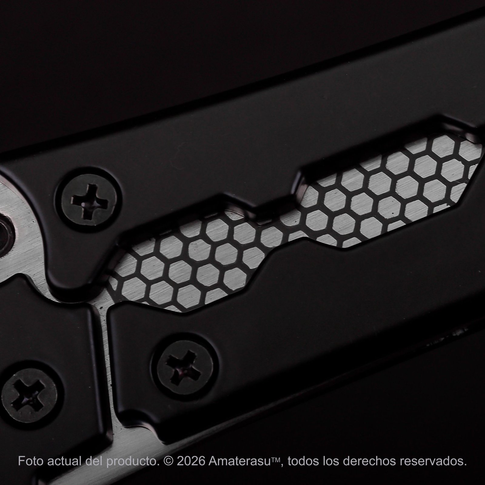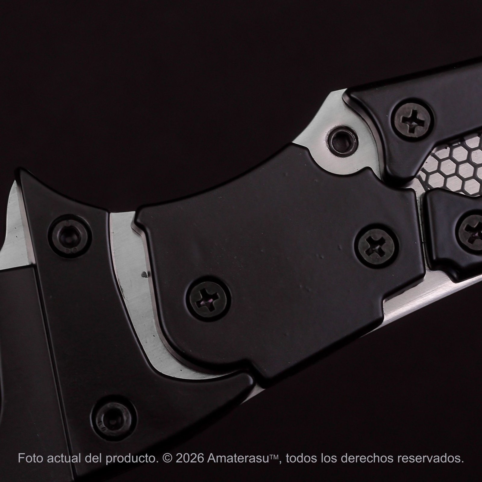 La hoja de acero inoxidable prioriza resistencia superficial, estabilidad y facilidad de mantenimiento, manteniendo una estética limpia y moderna. Al no presentar filo, la pieza refuerza su perfil como objeto de colección, permitiendo una exhibición segura y prolongada sin comprometer su integridad.