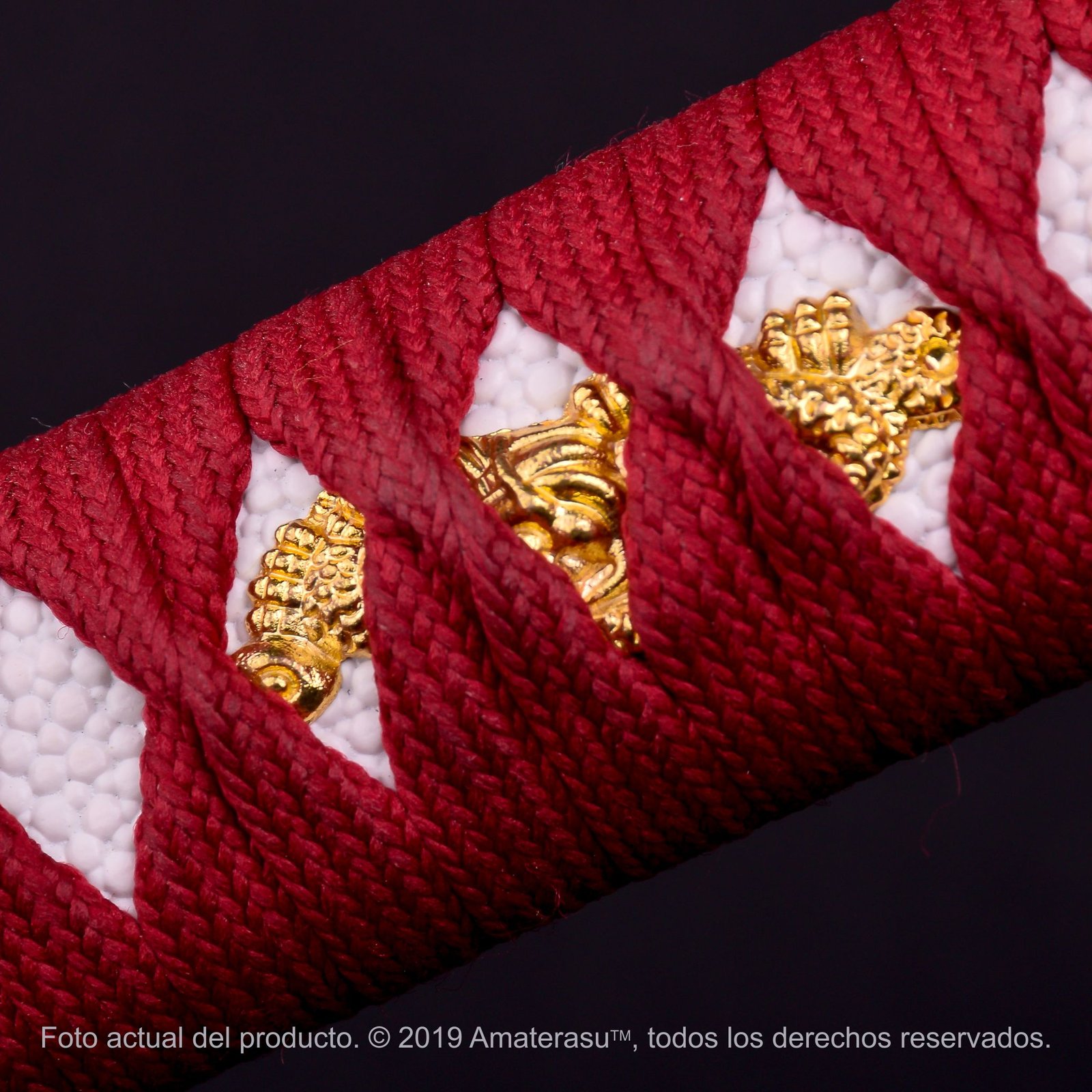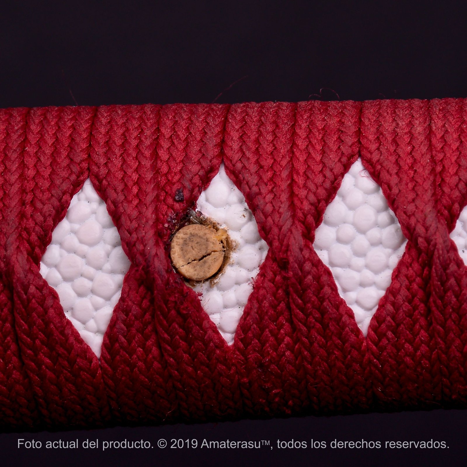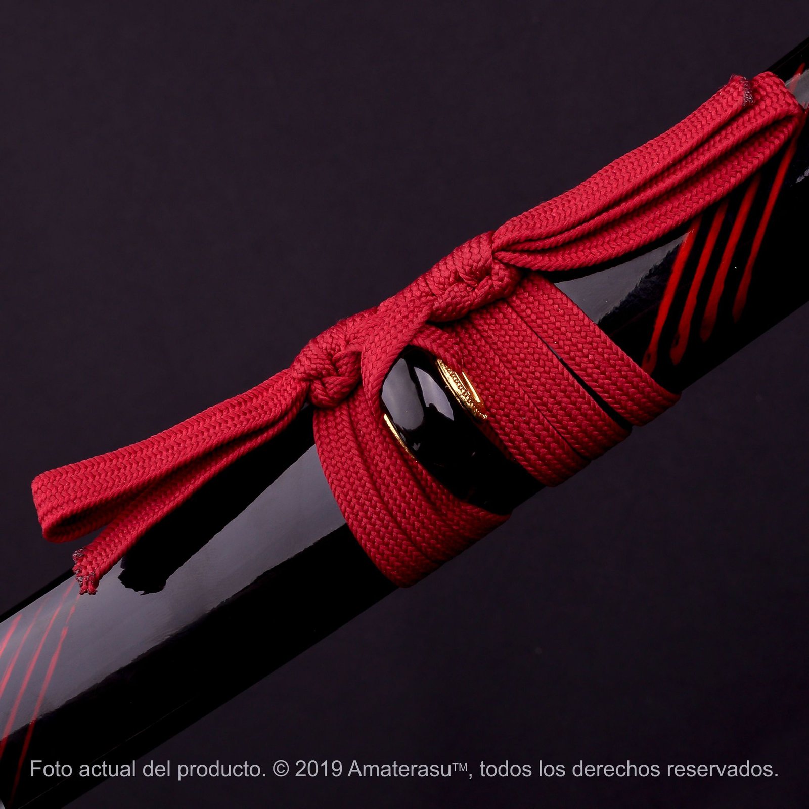 La Katana Kensei Tsume destaca por su estética contrastada en negro y rojo, hoja en acero real y una construcción sólida que transmite presencia. Pensada para colección, exhibición y ambientaciones con carácter.
