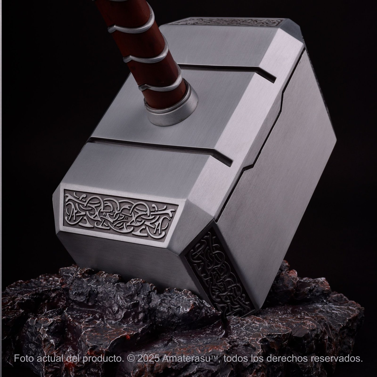 El Mjolnir no es un simple objeto, es el testamento de la nobleza y el poder de Thor Odinson. Esta edición de alta fidelidad recrea la estética vista en las películas del MCU, presentando una cabeza de aleación de zinc con un acabado de metal cepillado que le otorga una autenticidad abrumadora al tacto y a la vista.