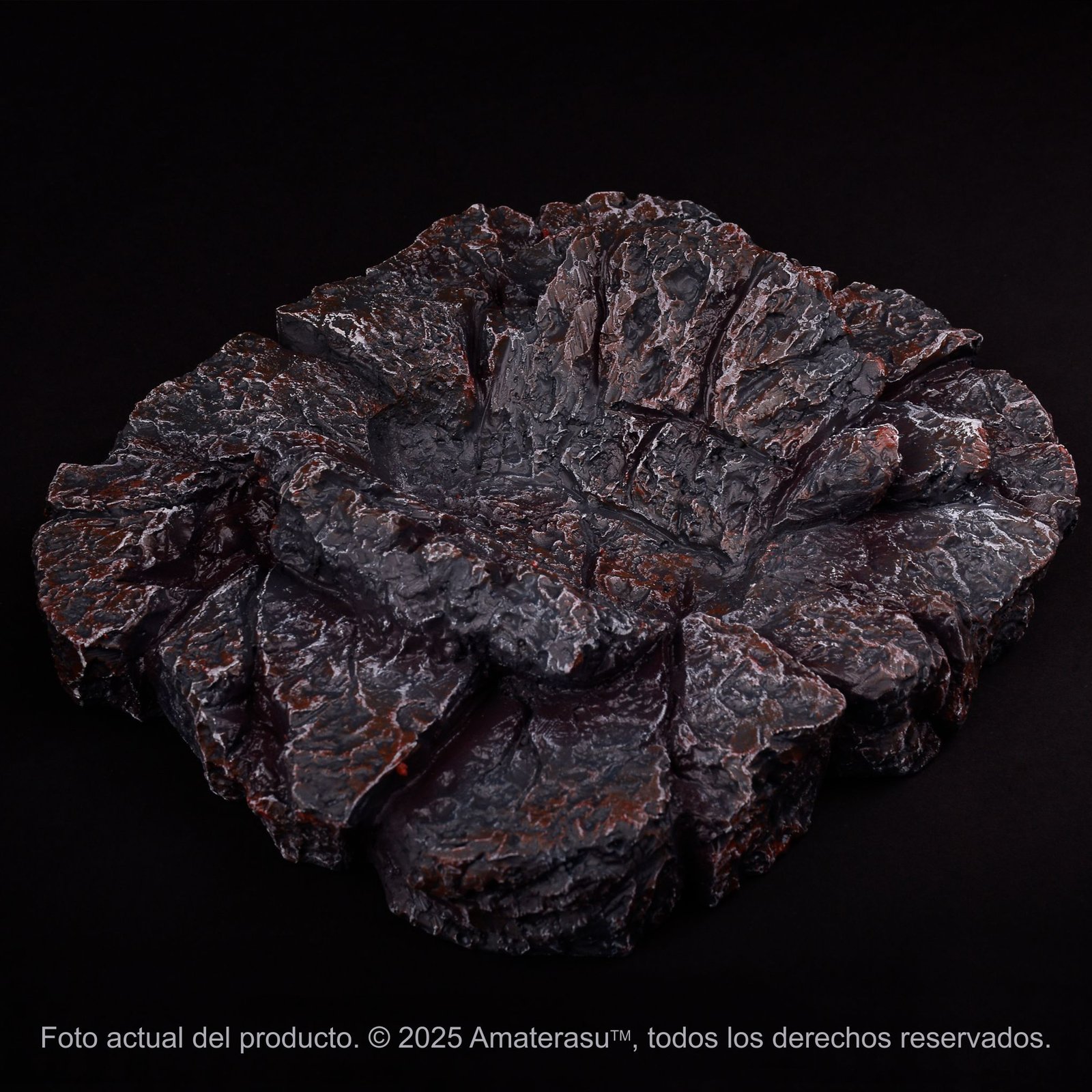 - Exhibición: Incluye base de resina maciza (simulación roca) y placa rúnica circular.