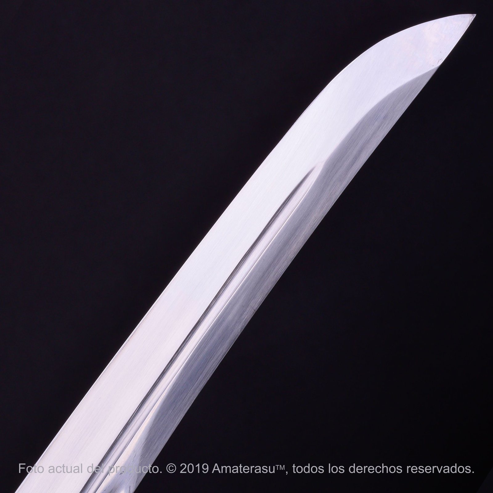 La hoja, forjada en acero al carbono 1045 normalizado y provista de bohi, presenta una geometría limpia y proporcionada. La construcción de espiga completa aporta coherencia estructural y solidez al conjunto, mientras que los herrajes en aleación y latón acompañan una lectura estética clásica y equilibrada.