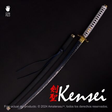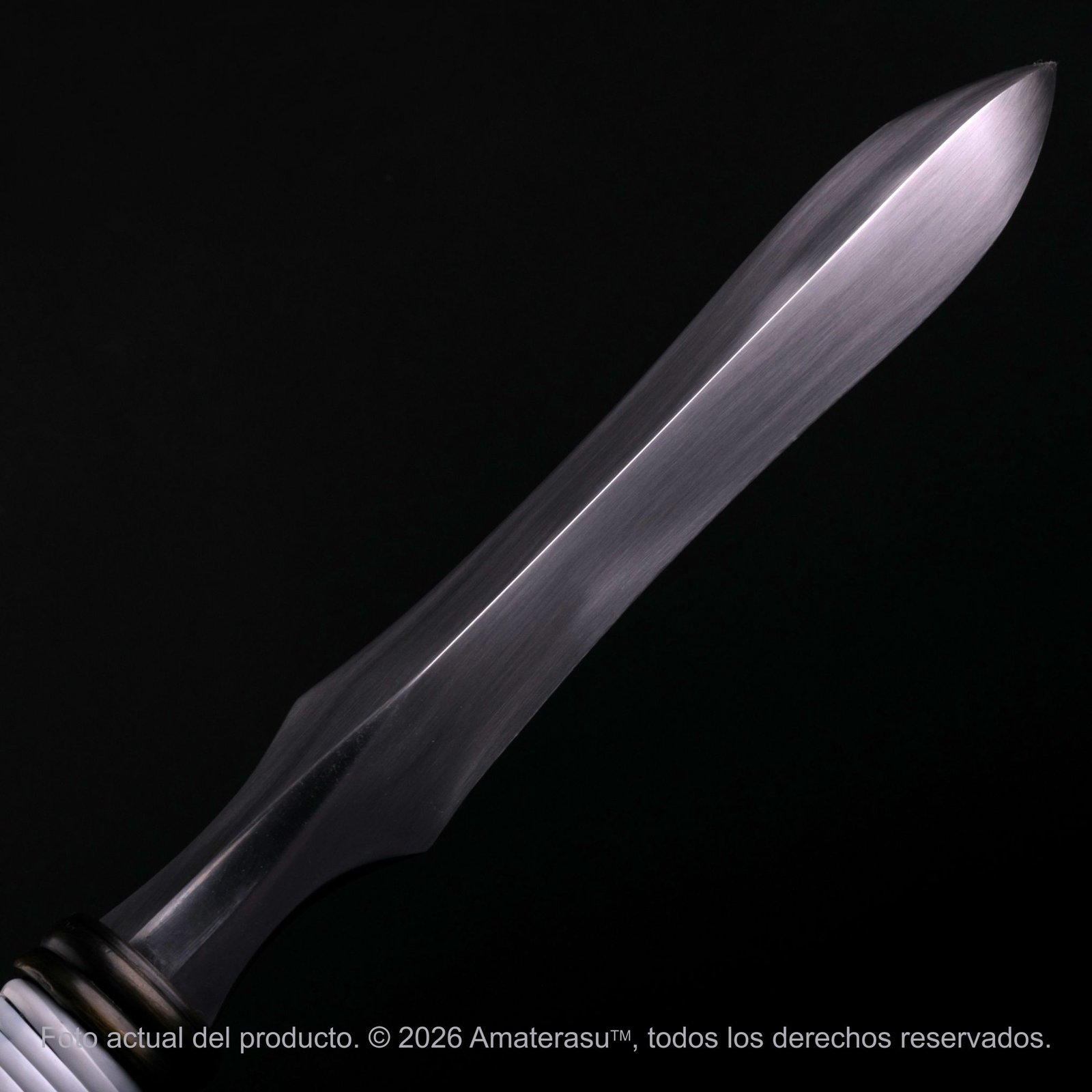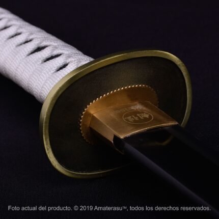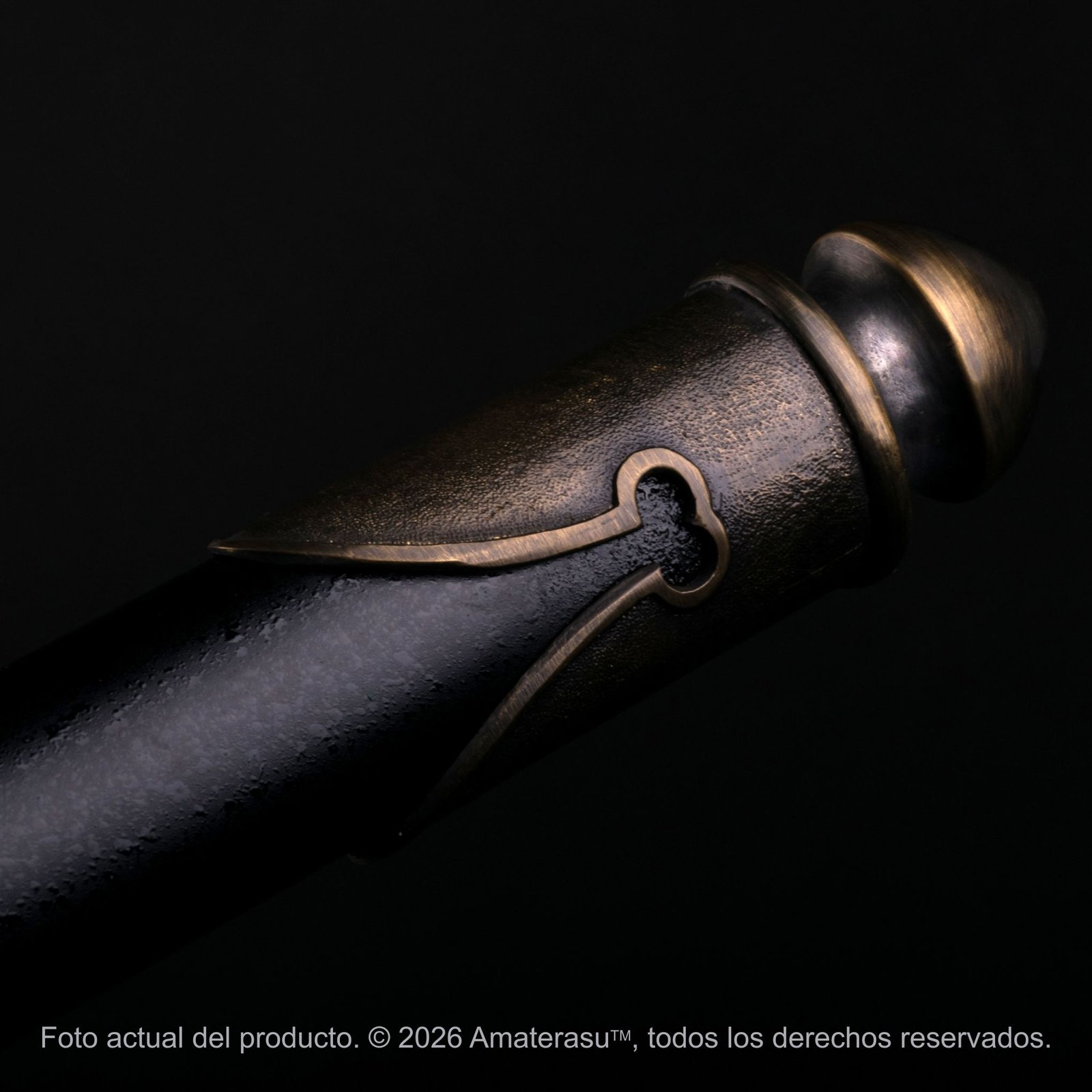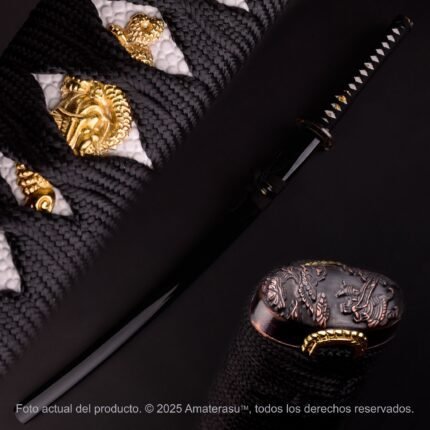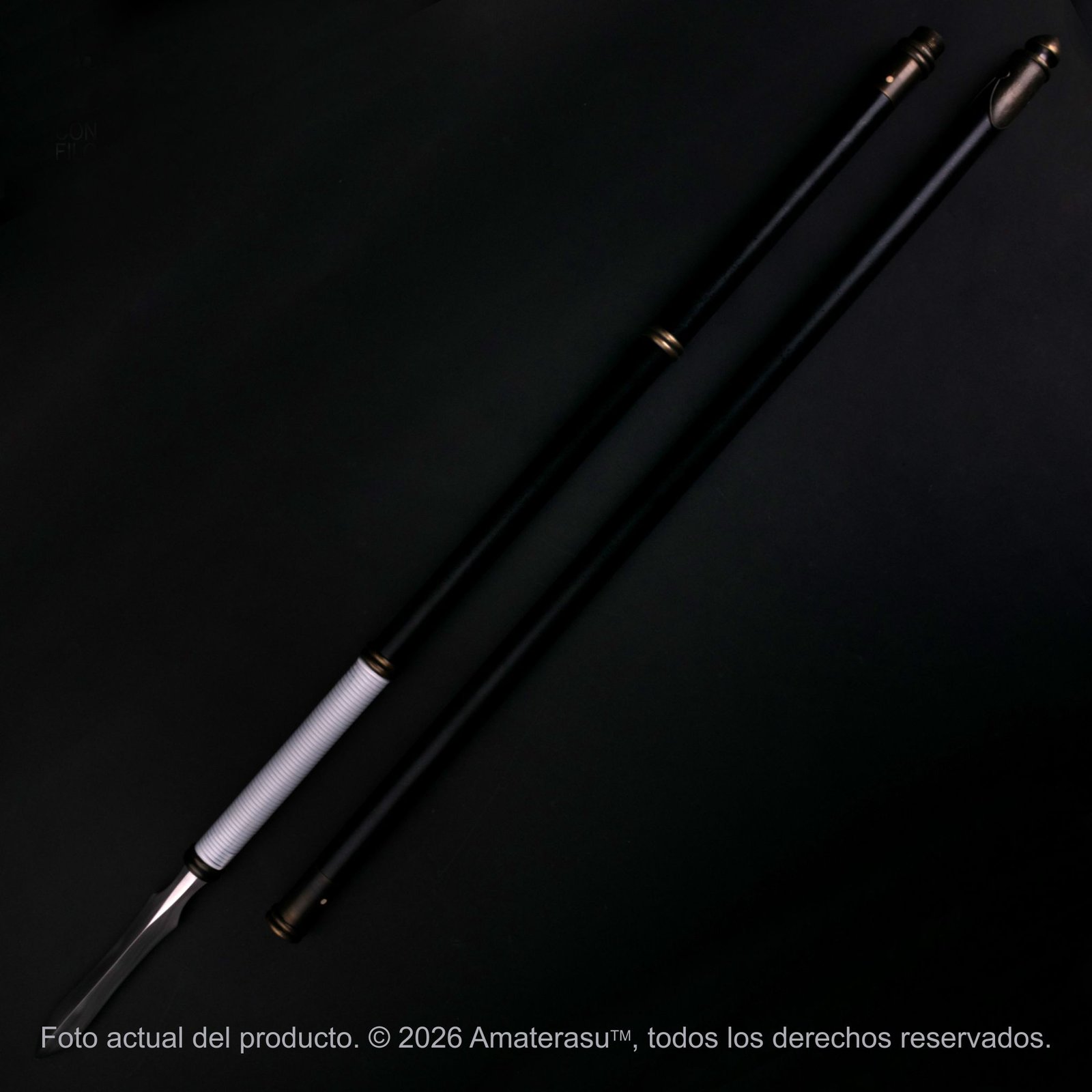 Las monturas metálicas (kanagu), realizadas en aleación con acabado pavonado, completan una pieza sobria, equilibrada y de fuerte impacto visual. Amaterasu presenta este yari como objeto de colección y exhibición, pensado para vitrinas, ambientaciones históricas y espacios dedicados al armamento tradicional japonés.